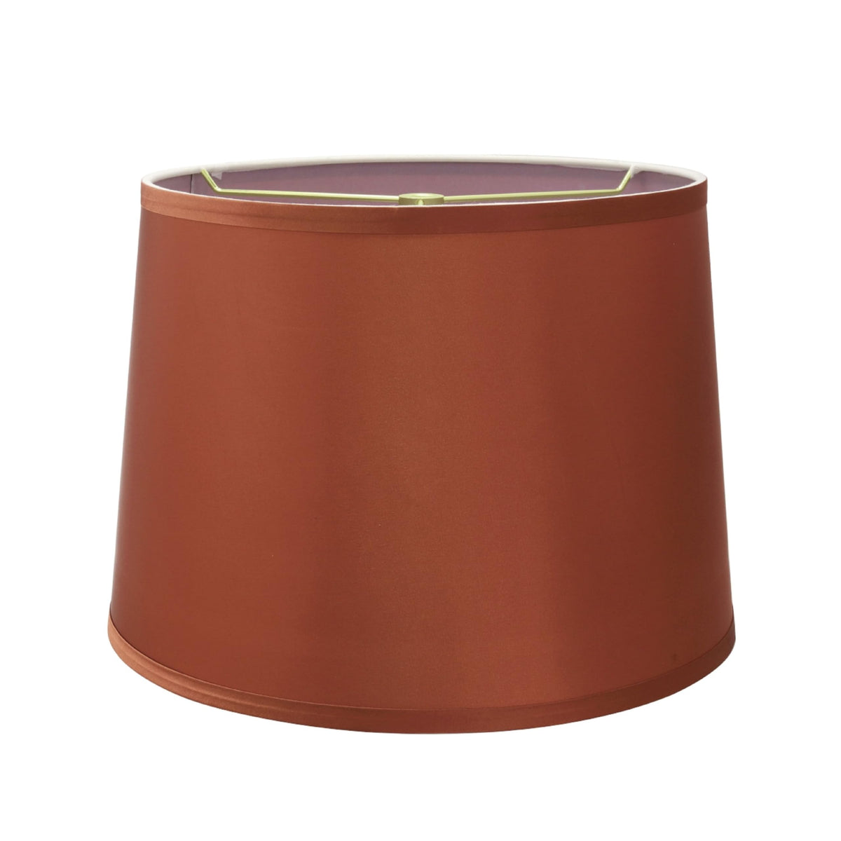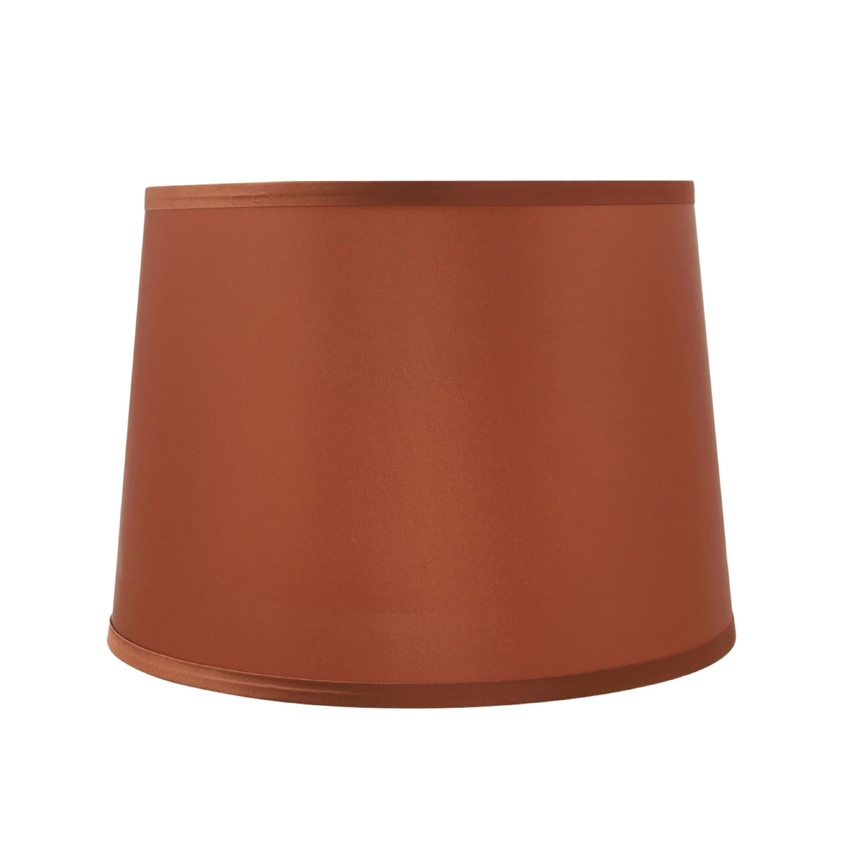 Aspen Creative Item #32307AAspen Creative offers a 1-pack empire-shaped spider lamp shade in burnt orange that will enhance your living space.Shade Dimensions: 12" Top x 14" Bottom x 10" HeightThe shade is made with a spider construction, this allows the shade to sit perfectly centered on a lamp harp attachment. It is compatible with a saddle base, and uno slip-on base lamp harp or a bulb clip adapter.Crafted with precision and attention to detail, our lamp shades are made with high-quality materials that are built to last. They are made to withstand daily use while still maintaining their shape and beauty.This product is suitable for a wide range of lighting options including table lamps, accent lamps, vintage lamps, candle stick lamps, kid's room lamps, bedroom lamps, bedroom table lamps, night stand lamps, reading lamps, bedside reading lamps, living room end table lamps, bedroom night stand lamps, and pendant lights.