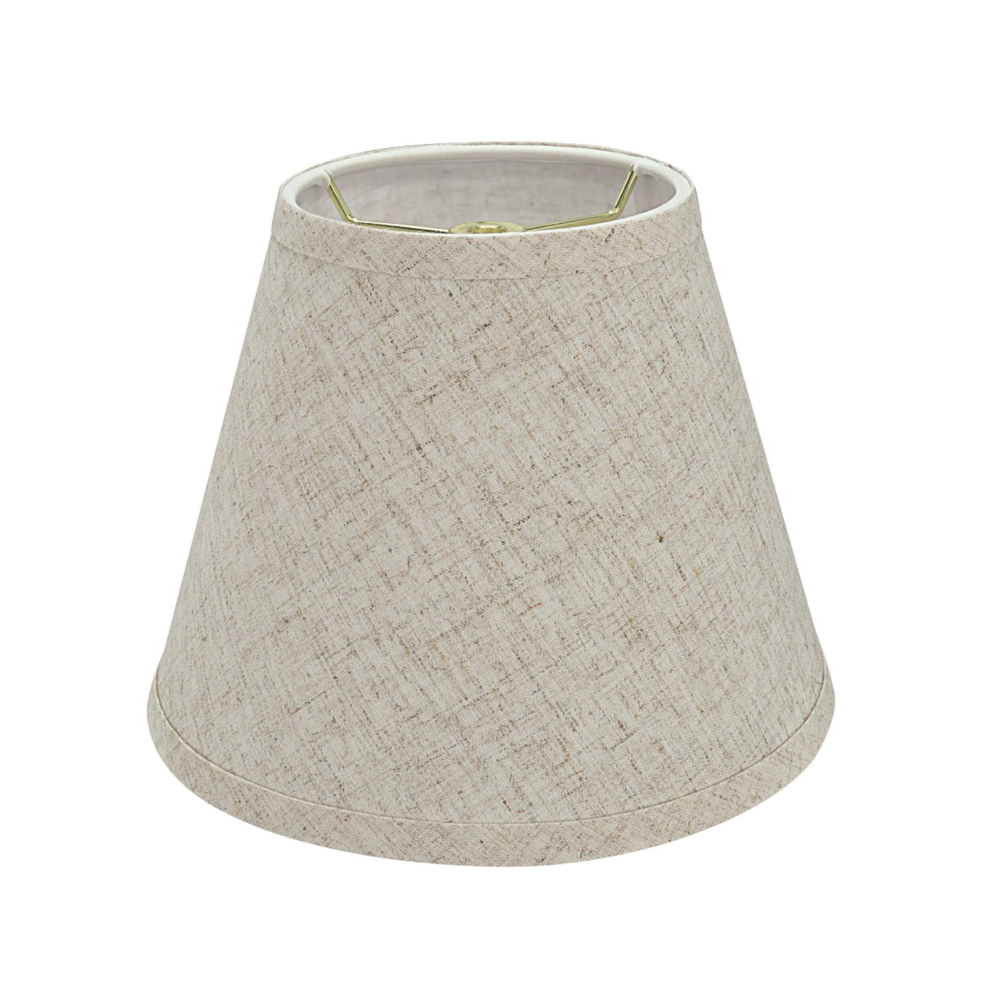 Aspen Creative Item #32426AAspen Creative offers a 1-pack empire-shaped spider lamp shade in beige that will enhance your living space.Shade Dimensions: 5" Top x 9" Bottom x 7" HeightThe shade is made with a spider construction, this allows the shade to sit perfectly centered on a lamp harp attachment. It is compatible with a saddle base, and uno slip-on base lamp harp or a bulb clip adapter.Crafted with precision and attention to detail, our lamp shades are made with high-quality materials that are built to last. They are made to withstand daily use while still maintaining their shape and beauty.This product is suitable for a wide range of lighting options including table lamps, accent lamps, vintage lamps, candle stick lamps, kid's room lamps, bedroom lamps, bedroom table lamps, night stand lamps, reading lamps, bedside reading lamps, living room end table lamps, bedroom night stand lamps, and pendant lights.