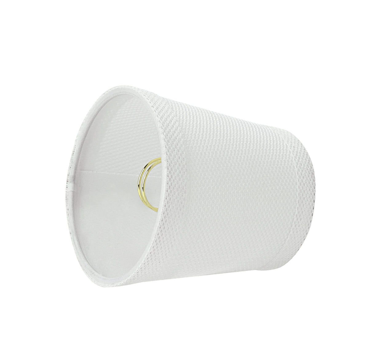 Q: What are the dimensions of the Aspen Creative clip-on lamp shades?A: The dimensions of the Aspen Creative clip-on lamp shades are 3 inches at the top, 4 inches at the bottom, and a slant height of 4 inches. This small empire shape is ideal for a variety of lighting fixtures.
