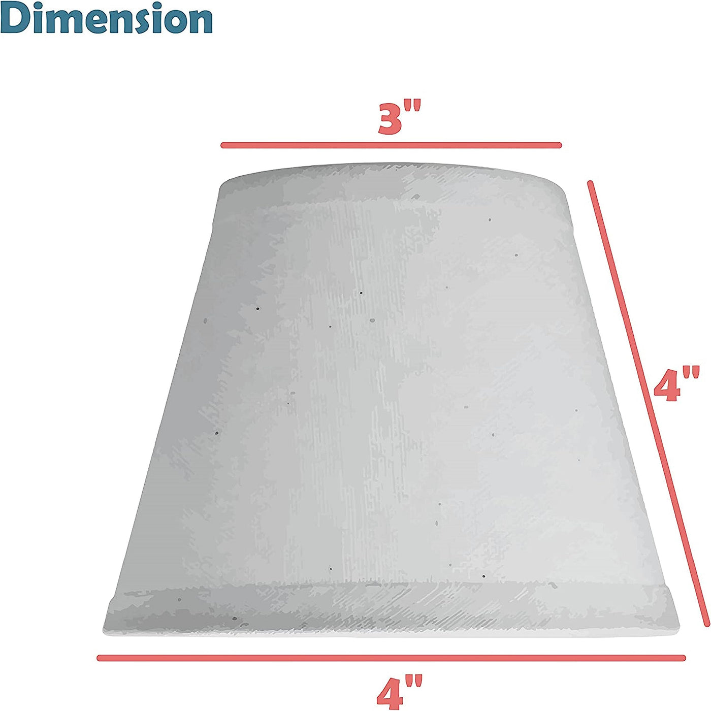 Q: What are the dimensions of the Aspen Creative empire clip-on lamp shade?A: The Aspen Creative empire clip-on lamp shade has dimensions of 3 inches at the top, 4 inches at the bottom, and a slant height of 4 inches.