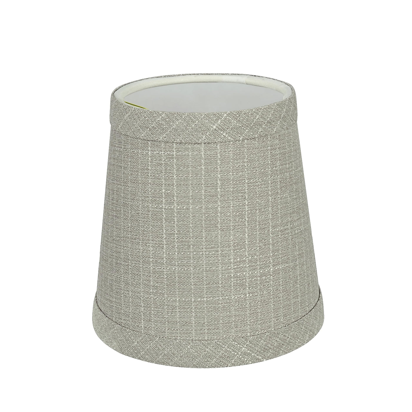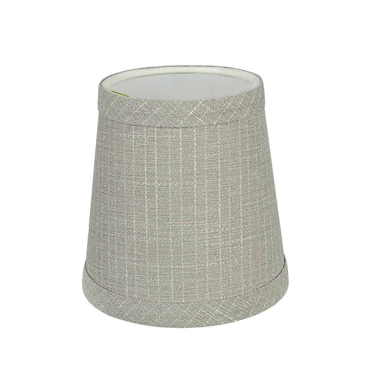 Aspen Creative Item #32721-2AAspen Creative offers a 2-pack empire shaped clip-on lamp shade in grey that will enhance any space.Shade Dimensions: 3" Top x 4" Bottom x 4" HeightThe shade is made with a clip-on styled fitter that is most compatible with torpedo chandelier light bulbs but can also be used with other bulbs that are similar in size. We recommend that any light bulbs that is used with this product be a candelabra base (E12) or medium base (E26) and 40 wattage maximum, we do not recommend the use of bent tip light bulbs or standard sized light bulbs.Crafted with precision and attention to detail, our lamp shades are made with high-quality materials that are built to last. They are made to withstand daily use while still maintaining their shape and beauty.This product is suitable for a wide range of lighting options including small table lamps, accent lamps, candle stick lamps, chandeliers, and wall sconces, and bedroom night light lamps.