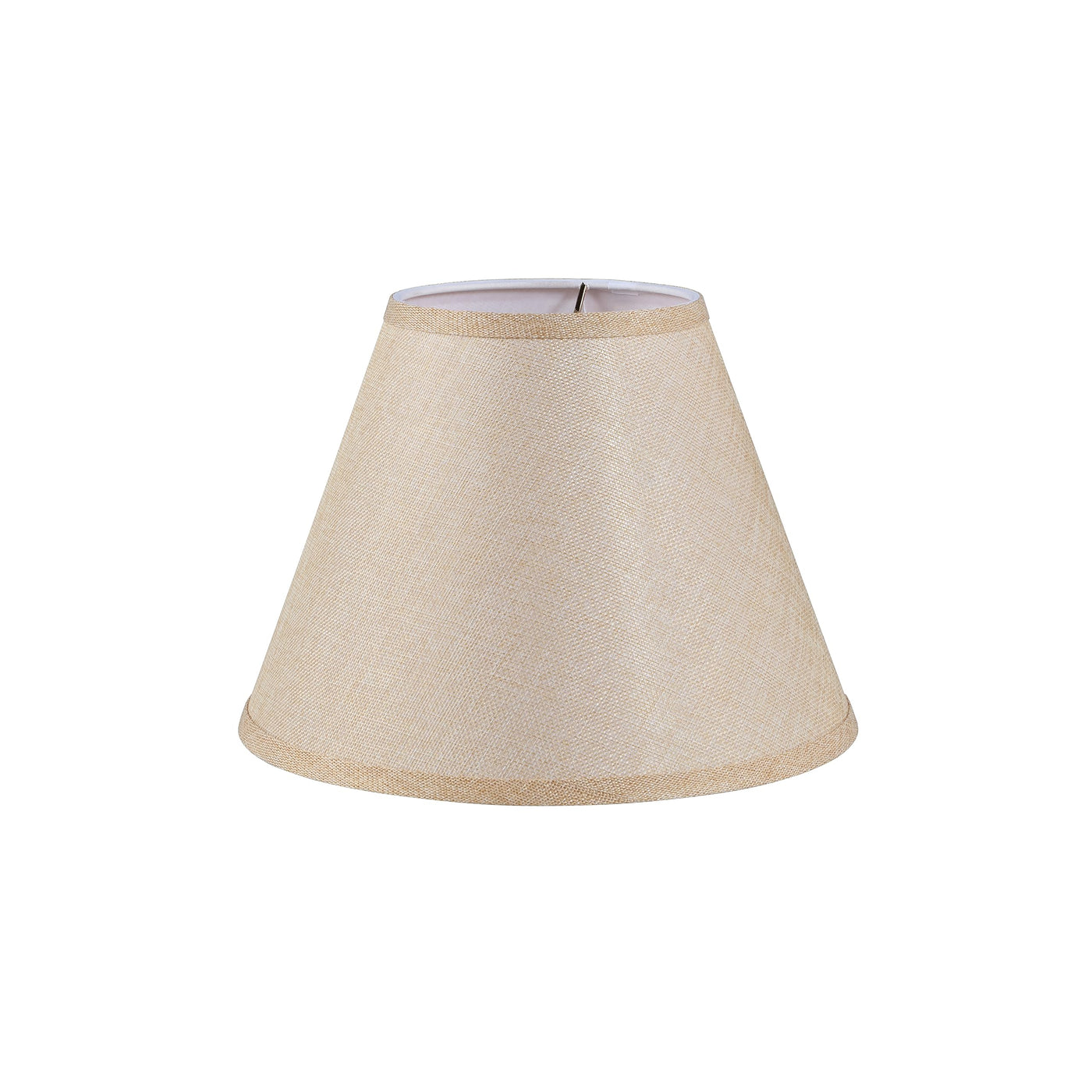 Aspen Creative Item #32998Aspen Creative offers a 1 pack empire shaped spider lamp shade in wheat that will enhance your living space.Shade Dimensions: 6" Top x 12" Bottom x 9" Slant Height.The shade is made with a spider construction, this allows the shade to sit perfectly centered on a lamp harp attachment. It is compatible with a saddle base, and uno slip-on base lamp harp or a bulb clip adapter.Crafted with precision and attention to detail, our lamp shades are made with high-quality materials that are built to last. They are made to withstand daily use while still maintaining their shape and beauty.This product is suitable for a wide range of lighting options including table lamps, accent lamps, vintage lamps, candle stick lamps, kid's room lamps, bedroom lamps, bedroom table lamps, night stand lamps, reading lamps, bedside reading lamps, living room end table lamps, bedroom night stand lamps, and pendant lights.