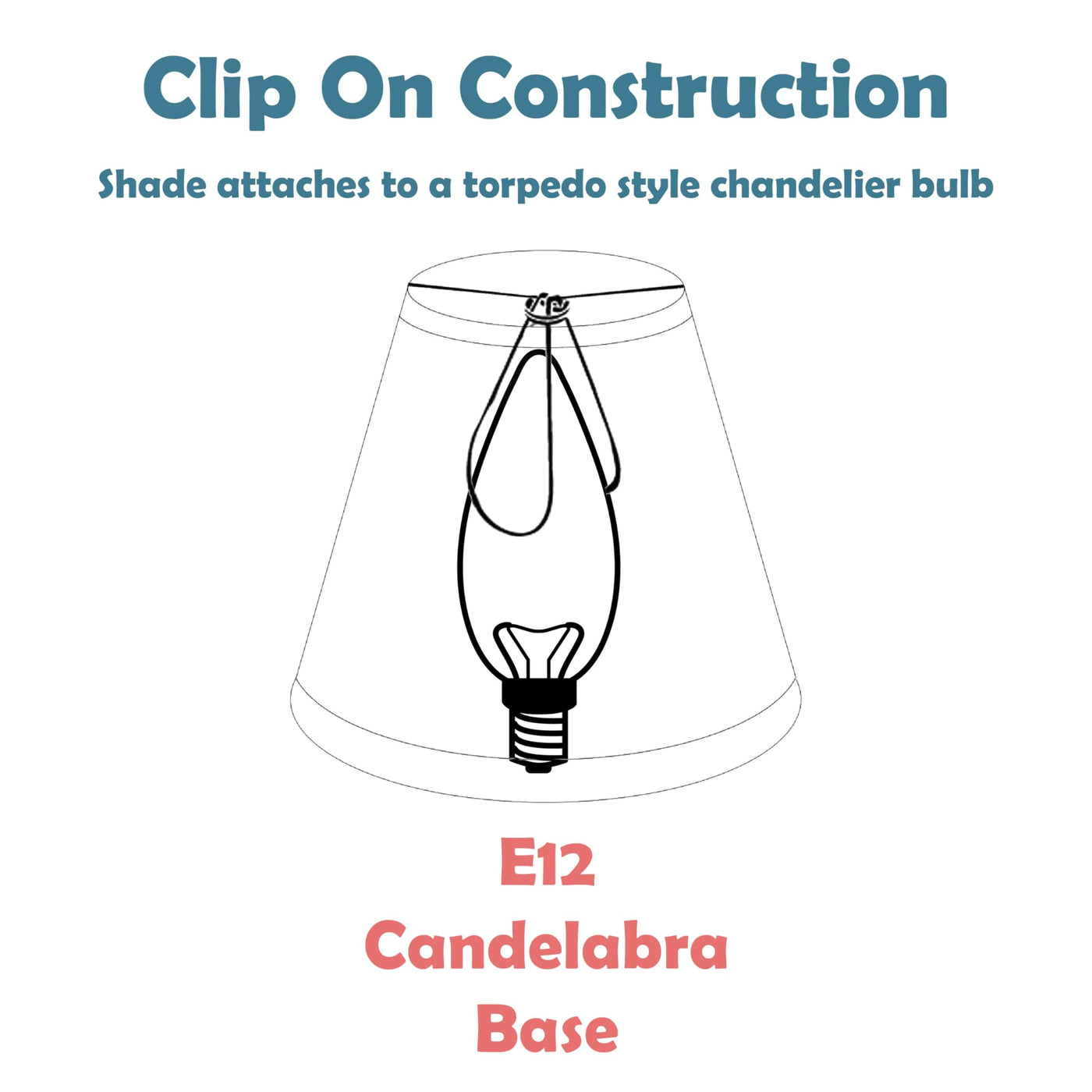 Aspen Creative Item #33002-5Baspen Creative Offers A 5-Pack Empire Shaped Clip-On Lamp Shade In Gold That Will Enhance Any Space.Shade Dimensions: 3'' Top X 5'' Bottom X 4'' Heightthe Shade Is Made With A Clip-On Styled Fitter That Is Most Compatible With Torpedo Chandelier Light Bulbs But Can Also Be Used With Other Bulbs That Are Similar In Size. We Recommend That Any Light Bulbs That Is Used With This Product Be A Candelabra Base (E12) Or Medium Base (E26) And 40 Wattage Maximum, We Do Not Recommend The Use Of Bent Tip Light Bulbs Or Standard Sized Light Bulbs.Crafted With Precision And Attention To Detail, Our Lamp Shades Are Made With High-Quality Materials That Are Built To Last. They Are Made To Withstand Daily Use While Still Maintaining Their Shape And Beauty.This Product Is Suitable For A Wide Range Of Lighting Options Including Small Table Lamps, Accent Lamps, Candle Stick Lamps, Chandeliers, And Wall Sconces, And Bedroom Night Light Lamps.