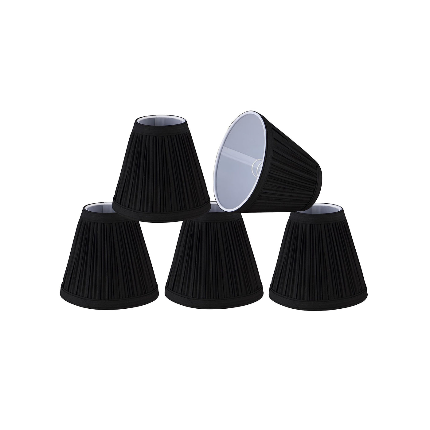 Aspen Creative Item #33122-5Aspen Creative Offers A 5-Pack Empire Shaped Clip-On Lamp Shade In Black That Will Enhance Any Space.Shade Dimensions: 3'' Top X 6'' Bottom X 5'' Heightthe Shade Is Made With A Clip-On Styled Fitter That Is Most Compatible With Torpedo Chandelier Light Bulbs But Can Also Be Used With Other Bulbs That Are Similar In Size. We Recommend That Any Light Bulbs That Is Used With This Product Be A Candelabra Base (E12) Or Medium Base (E26) And 40 Wattage Maximum, We Do Not Recommend The Use Of Bent Tip Light Bulbs Or Standard Sized Light Bulbs.Crafted With Precision And Attention To Detail, Our Lamp Shades Are Made With High-Quality Materials That Are Built To Last. They Are Made To Withstand Daily Use While Still Maintaining Their Shape And Beauty.This Product Is Suitable For A Wide Range Of Lighting Options Including Small Table Lamps, Accent Lamps, Candle Stick Lamps, Chandeliers, And Wall Sconces, And Bedroom Night Light Lamps.