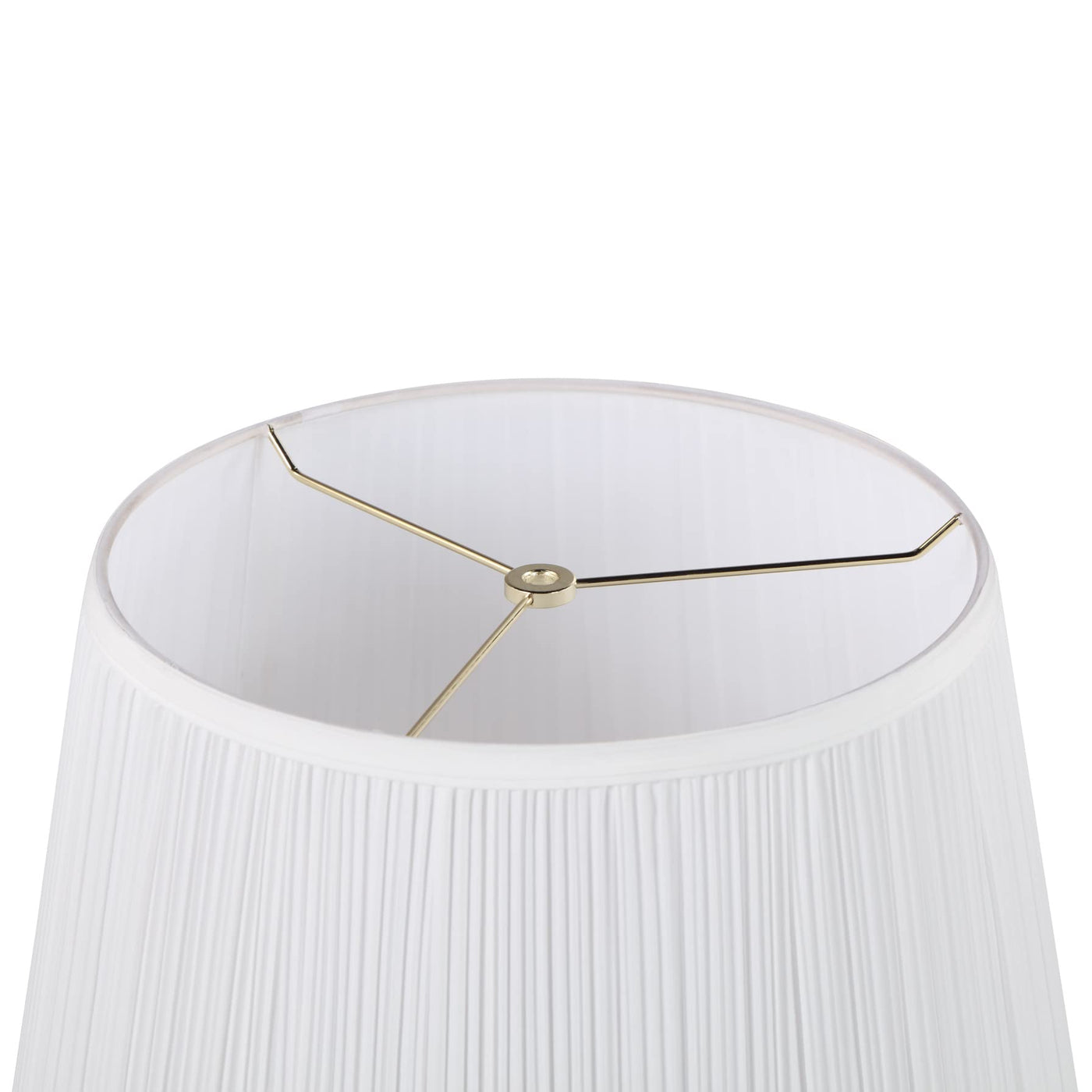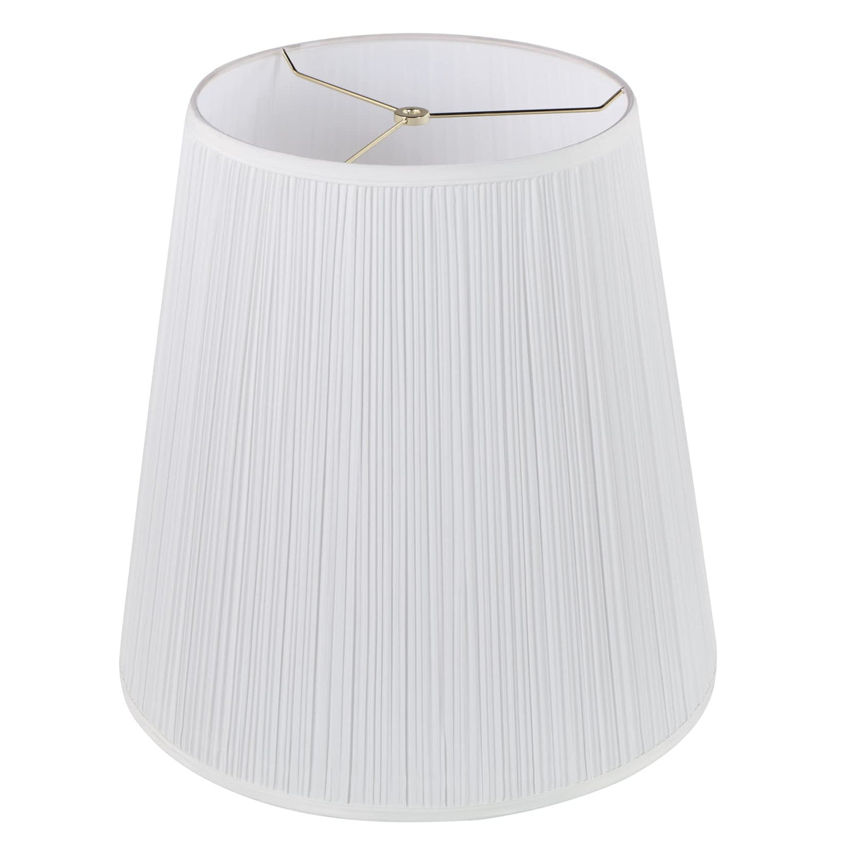 Aspen Creative offers a 1 pack traditional hardback mushroom pleated empire replacement lamp shade. Made with tetoron cotton fabric in white. The lamp shade size is 12 inch top x 18 inch bottom x 18 inch slant height. This lamp shade is a Spider construction – designed to attach to lamp harp. Applications - For table lamps, accent lamps, vintage lamps, candle stick lamps and kid's room lamps.
