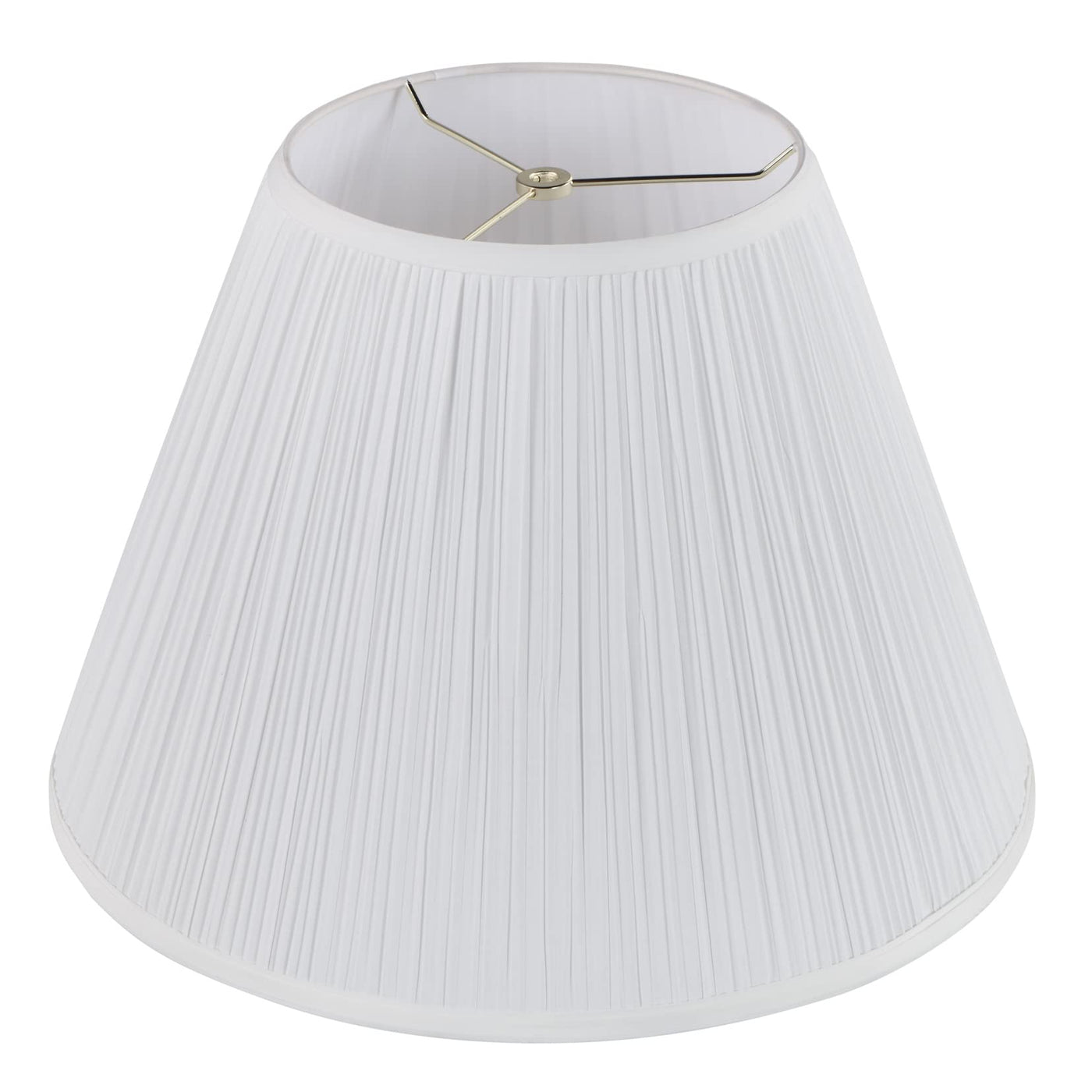 Aspen Creative Item 33137Aspen Creative offers a 1 pack mushroom empire shaped spider lamp shade in white that will enhance your living space.Shade Dimensions: 9" Top x 18" Bottom x 13" Slant HeightThe shade is made with a spider construction, this allows the shade to sit perfectly centered on a lamp harp attachment. It is compatible with a saddle base, and uno slip-on base lamp harp or a bulb clip adapter.Crafted with precision and attention to detail, our lamp shades are made with high-quality materials that are built to last. They are made to withstand daily use while still maintaining their shape and beauty.This product is suitable for a wide range of lighting options including table lamps, accent lamps, vintage lamps, candle stick lamps, kid's room lamps, bedroom lamps, bedroom table lamps, night stand lamps, reading lamps, bedside reading lamps, living room end table lamps, bedroom night stand lamps, and pendant lights.