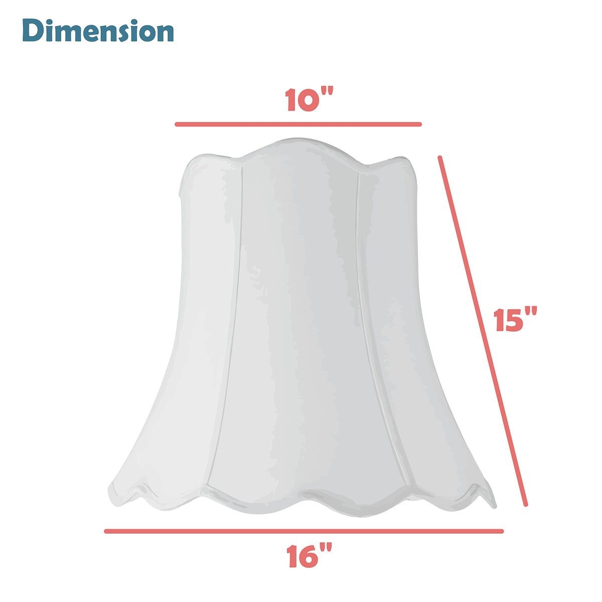 Q: What are the dimensions of the Aspen Creative 34068 lamp shade?A: The Aspen Creative 34068 lamp shade has a top diameter of 10 inches, a bottom diameter of 16 inches, and a slant height of 15 inches.