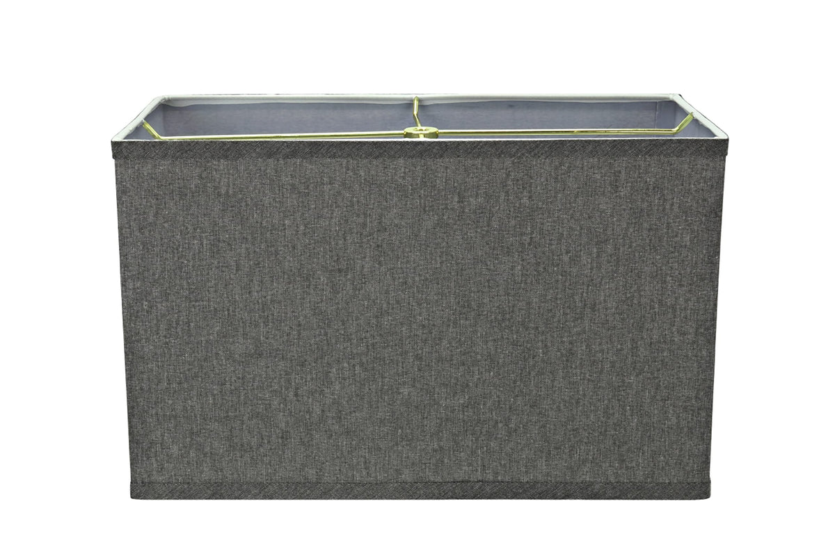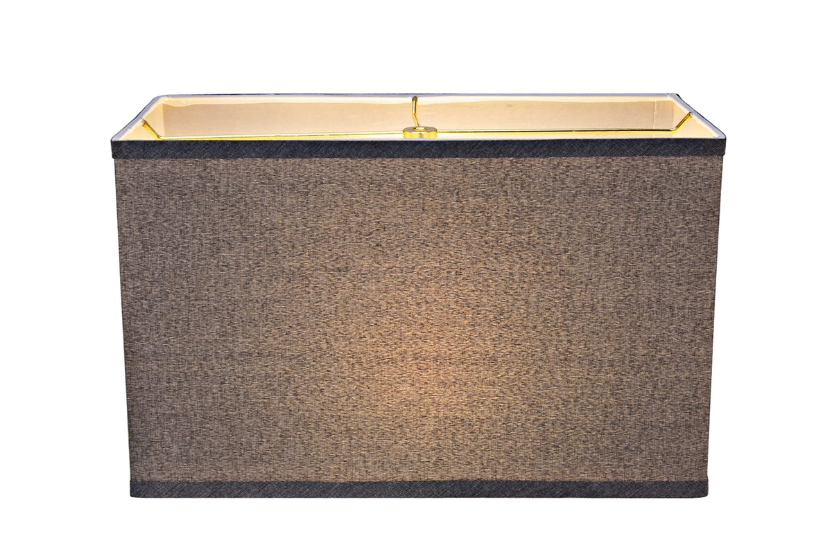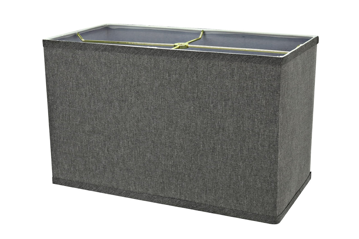 Aspen Creative Item #36007Aspen Creative offers a 1-pack Retangle-Shaped Spider Lamp shade in Grey that will enhance your living space.Shade Dimensions: (8'' + 16'') Top x (8'' + 16'') Bottom x 10'' Height.The shade is made with a spider construction, this allows the shade to sit perfectly centered on a lamp harp attachment. It is compatible with a saddle base, and uno slip-on base lamp harp or a bulb clip adapter.Crafted with precision and attention to detail, our lamp shades are made with high-quality materials that are built to last. They are made to withstand daily use while still maintaining their shape and beauty.This product is suitable for a wide range of lighting options including table lamps, accent lamps, vintage lamps, candle stick lamps, kid's room lamps, bedroom lamps, bedroom table lamps, night stand lamps, reading lamps, bedside reading lamps, living room end table lamps, bedroom night stand lamps, and pendant lights.