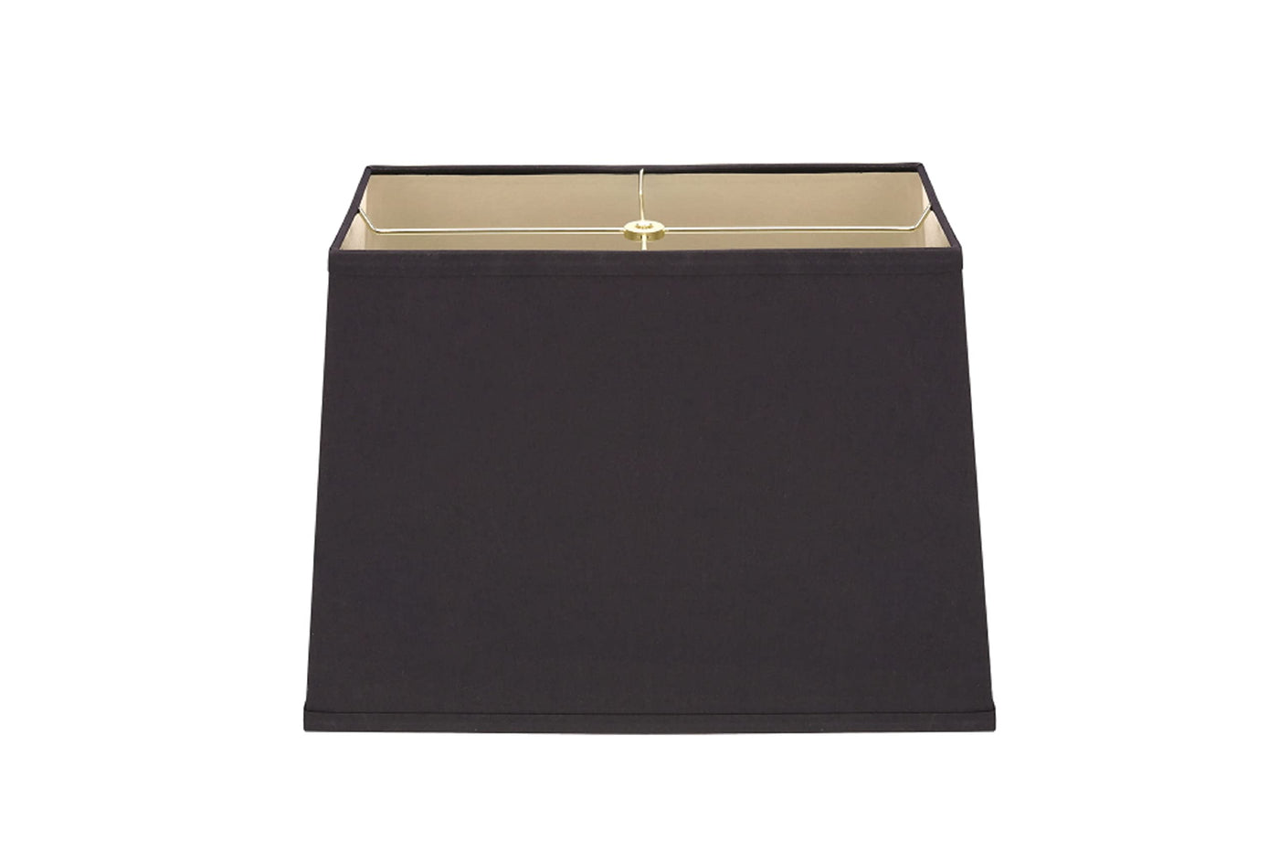 Aspen Creative is dedicated to offering a wide assortment of attractive and well-priced portable lamps, kitchen pendants, vanity wall fixtures, outdoor lighting fixtures, lamp shades, and lamp accessories. We have in-house designers that follow current trends and develop cool new products to meet those trends. Aspen Creative offers a 1 pack transitional rectangle hardback replacement lamp shade. Made with tetoron cotton fabric in black with gold inside. The lamp shade dimensions are 6" + 12" top, 8" + 14" bottom and 10" slant height. Spider construction – designed to attach to lamp harp (Lamp harp sold separately). Our hardback shades use Virgin Styrene backing board to produce a warm, natural & smooth light – more appealing than shades made with recycled Styrene board that can crack & yellow over time. . Applications - For table lamps, accent lamps, vintage lamps, candle stick lamps and kid's room lamps