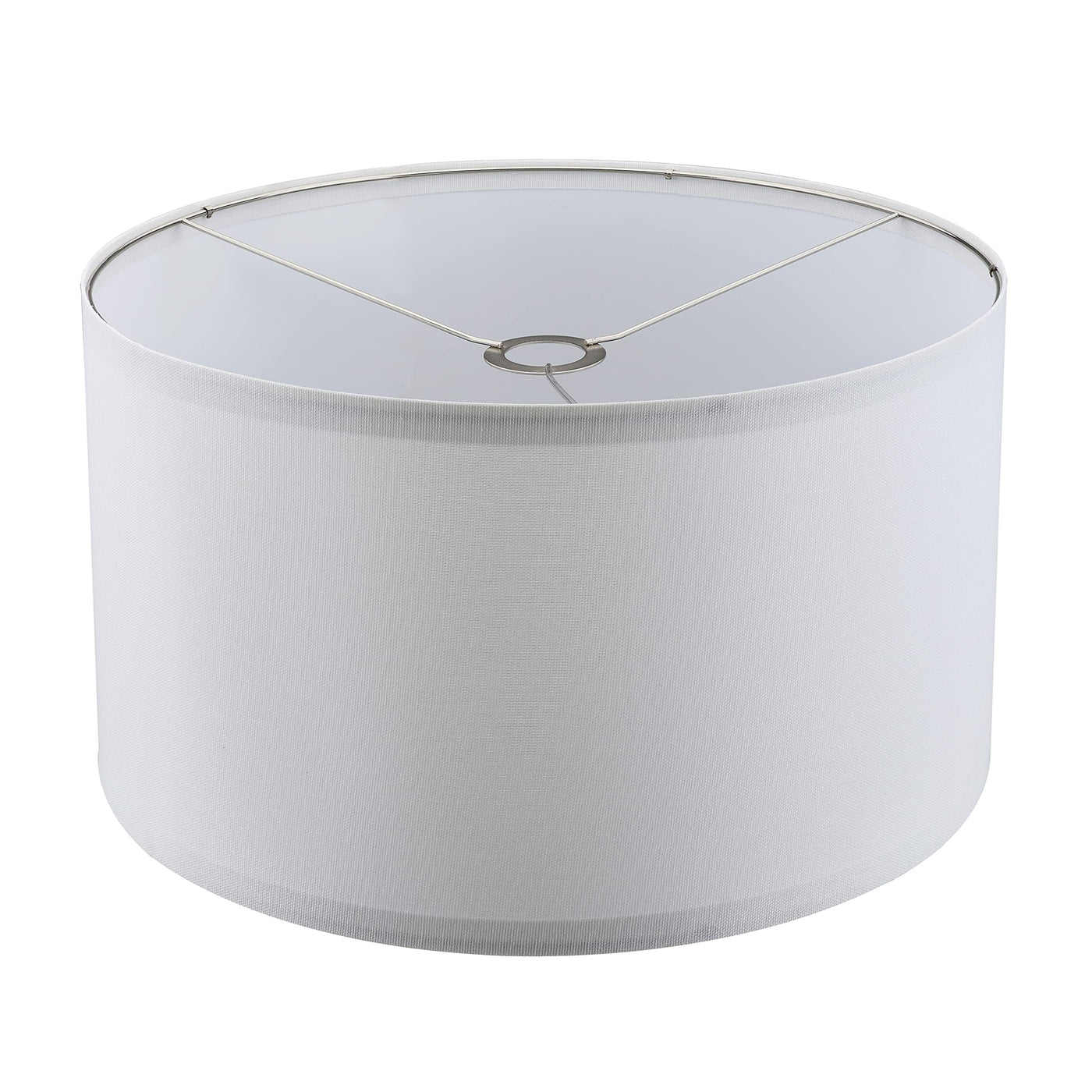 Aspen Creative Item #38872-2Aspen Creatives two pack of KD clips on drum shaped transitional spider shades in white, made with a linen fabric.The lamp shade size is 16 inch top, 16 inch bottom, and 9 inch slant height.This shade has a uno construction, designed to attach to UNO sockets, and is compatible with threaded and non-threaded socket shells.Assembly is required for this lampshade but it has easy to set up clips on design. Just fit the top and bottom ring into the clips on each long edge of the shade and fasten the hook and loop once assembled use as desired.Suitable for many table lamps, accent lamps, vintage lamps, candle stick lamps, kids room lamps, bedroom lamps, bedroom table lamps, night stand lamps, reading lamps, bedside reading lamps, living room end table lamps and bedroom night stand lamps.