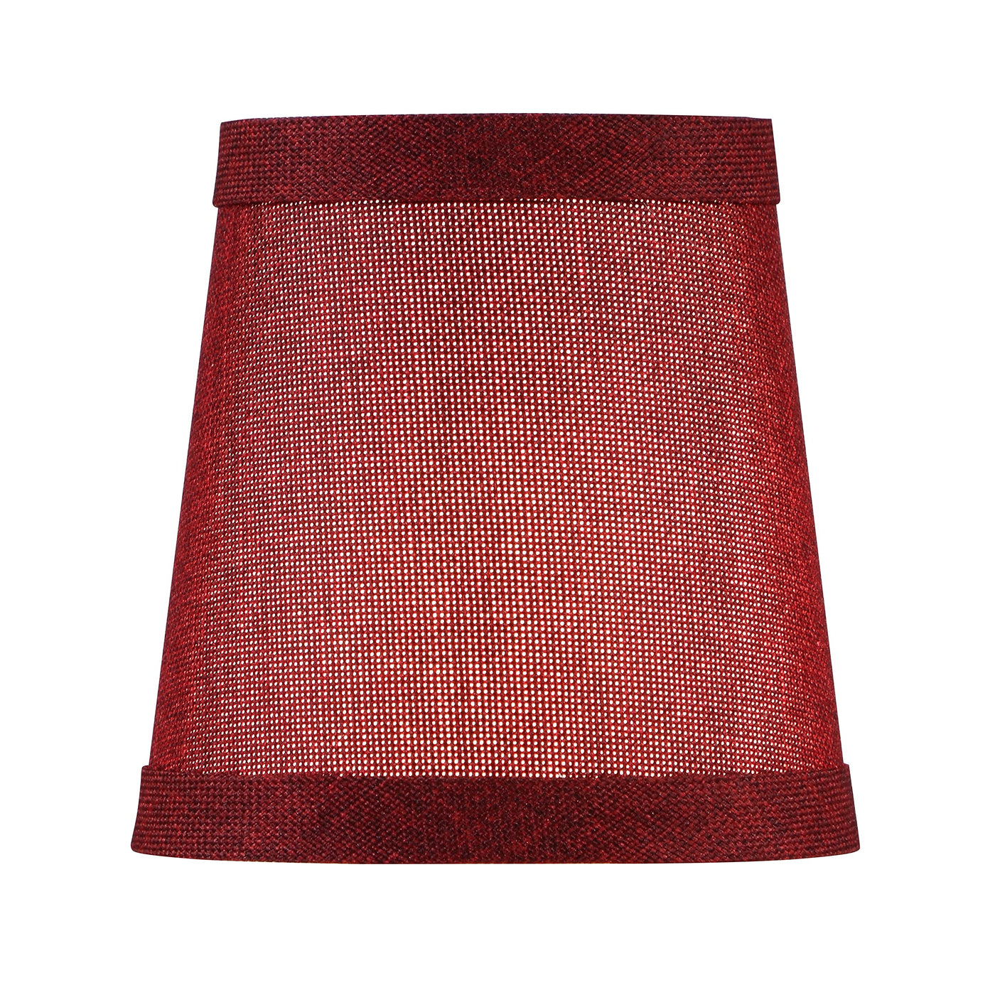 Aspen Creative Item #51012-2Aspen Creative offers a 2-pack empire shaped clip-on lamp shade in burgundy that will enhance any space.Shade Dimensions: 3" Top x 4" Bottom x 4" HeightThe shade is made with a clip-on styled fitter that is most compatible with torpedo chandelier light bulbs but can also be used with other bulbs that are similar in size. We recommend that any light bulbs that is used with this product be a candelabra base (E12) or medium base (E26) and 40 wattage maximum, we do not recommend the use of bent tip light bulbs or standard sized light bulbs.Crafted with precision and attention to detail, our lamp shades are made with high-quality materials that are built to last. They are made to withstand daily use while still maintaining their shape and beauty.This product is suitable for a wide range of lighting options including small table lamps, accent lamps, candle stick lamps, chandeliers, and wall sconces, and bedroom night light lamps.