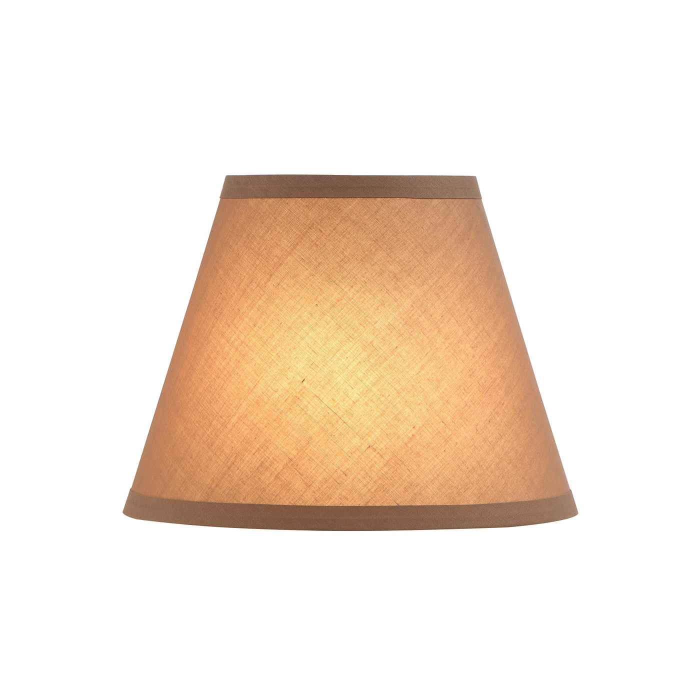 Aspen Creative Item #56001Aspen Creative offers a 1-pack empire shaped UNO Lamp shade in sienna brown that will enhance your living space.Shade Dimensions: 5 inches Top x 9 inches Bottom x 7 inches HeightThe shade is made with a UNO construction, this allows the shade to sit perfectly centered on a non-threaded lamp base socket.Crafted with precision and attention to detail, our lamp shades are made with high-quality materials that are built to last. They are made to withstand daily use while still maintaining their shape and beauty.This product is suitable for a wide range of lighting options including table lamps, accent lamps, vintage lamps, candle stick lamps, kid's room lamps, bedroom lamps, bedroom table lamps, night stand lamps, reading lamps, bedside reading lamps, living room end table lamps, bedroom night stand lamps, and pendant lights.