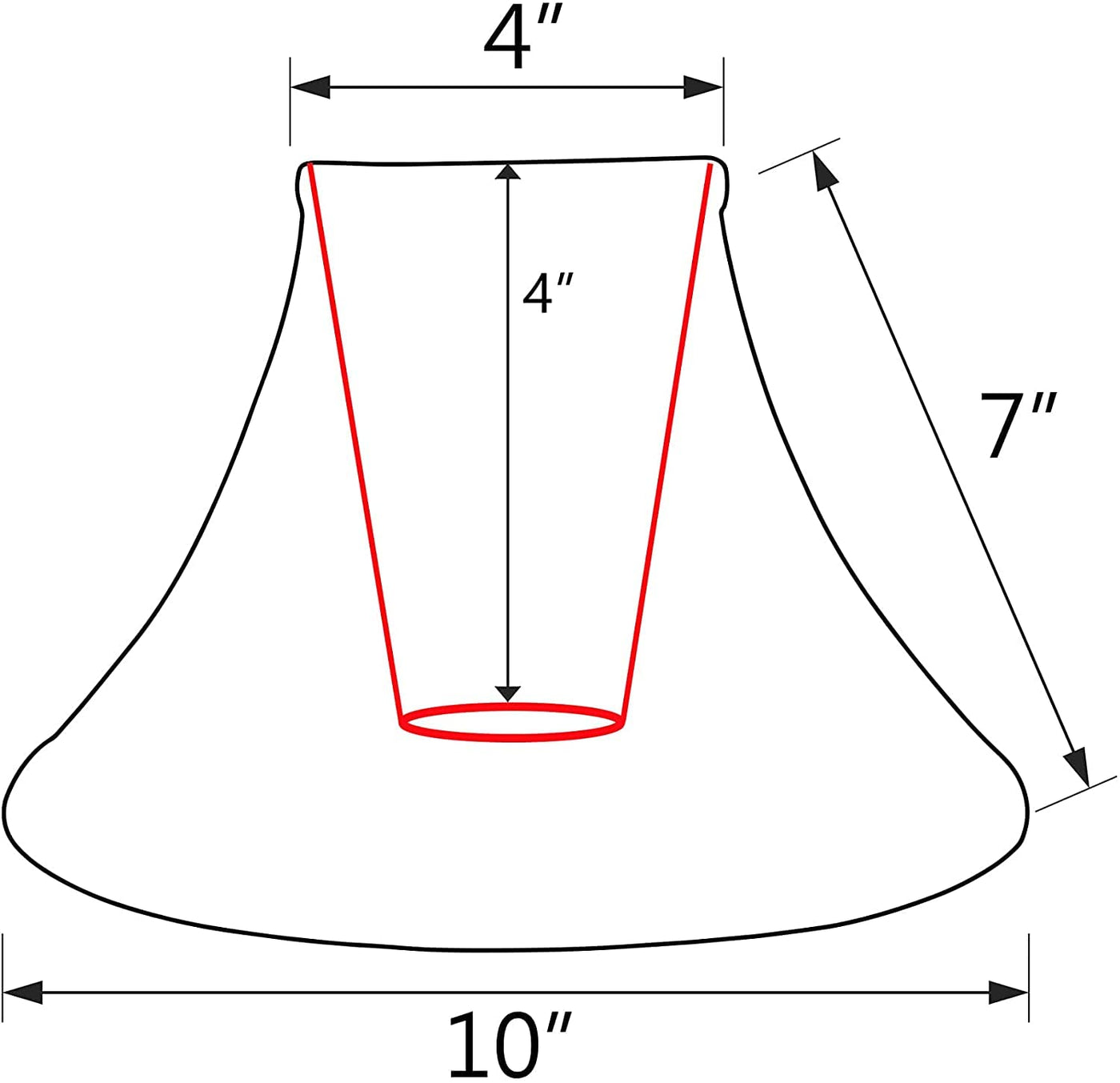 Q: What are the dimensions of the Aspen Creative 58030A lamp shade?A: The Aspen Creative 58030A lamp shade has a top diameter of 4 inches, a bottom diameter of 10 inches, and a slant height of 7 inches.