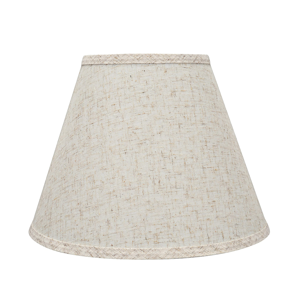 Aspen Creative Item #58877AAspen Creative offers a 1 pack empire shaped UNO construction lamp shade in flaxen with a tattersail pattern that will enhance your living space.Shade Dimensions: 6" Top x 12" Bottom x 9" Slant Height.The shade is made with a UNO construction, this allows the shade to sit perfectly centered on a threaded or non-threaded lamp base socket.Crafted with precision and attention to detail, our lamp shades are made with high-quality materials that are built to last. They are made to withstand daily use while still maintaining their shape and beauty.This product is suitable for a wide range of lighting options including table lamps, accent lamps, vintage lamps, candle stick lamps, kid's room lamps, bedroom lamps, bedroom table lamps, night stand lamps, reading lamps, bedside reading lamps, living room end table lamps, bedroom night stand lamps, and pendant lights.