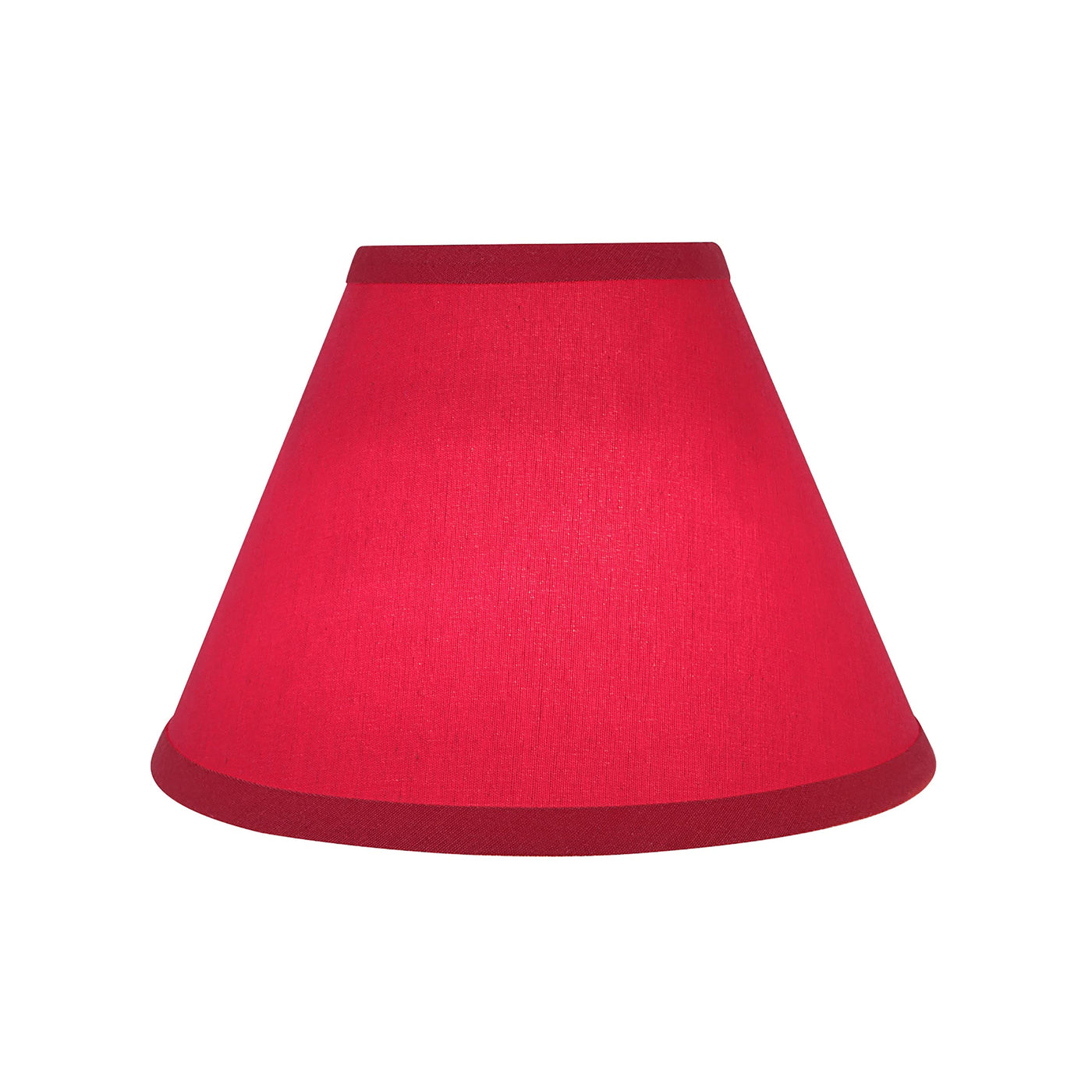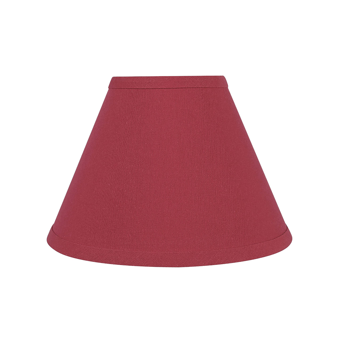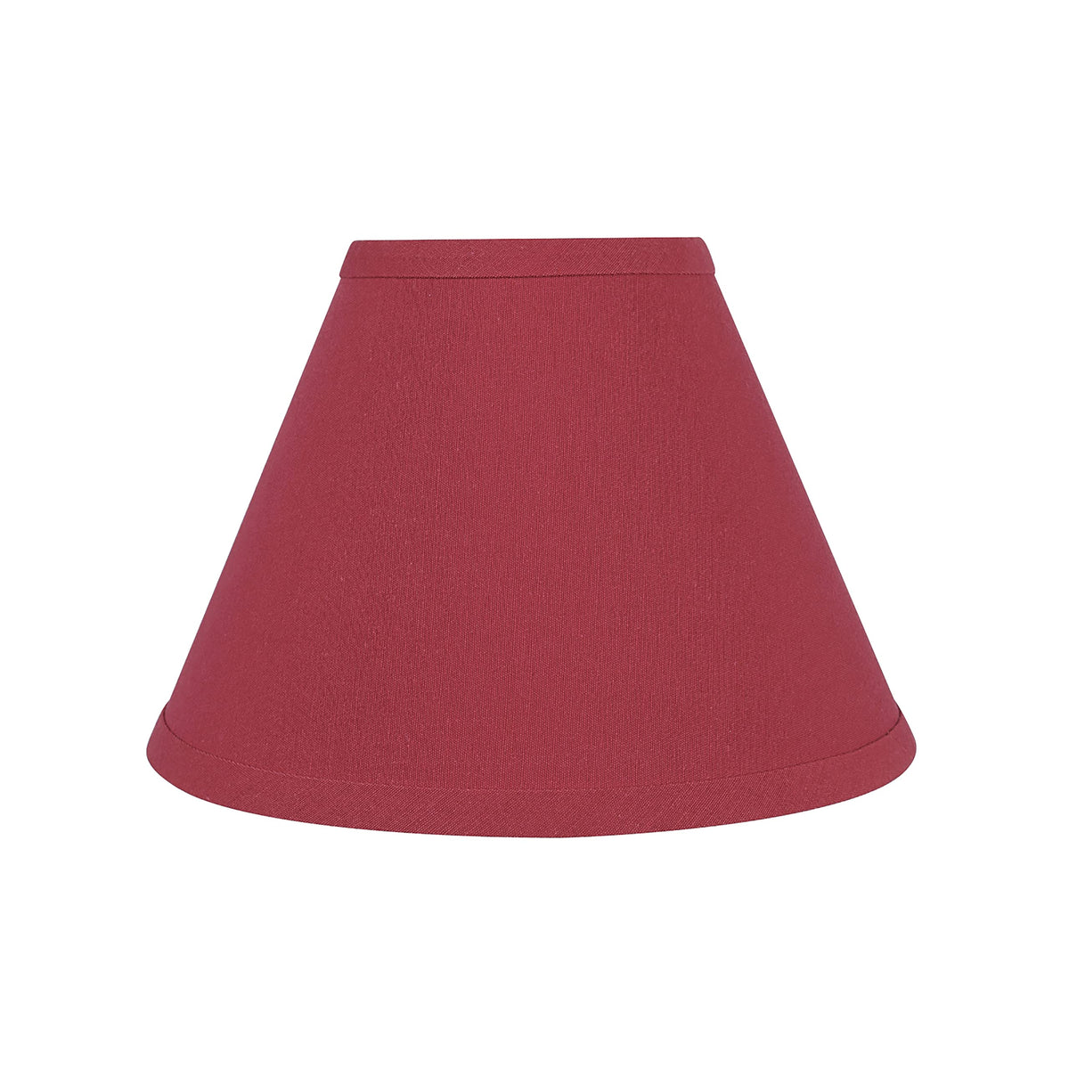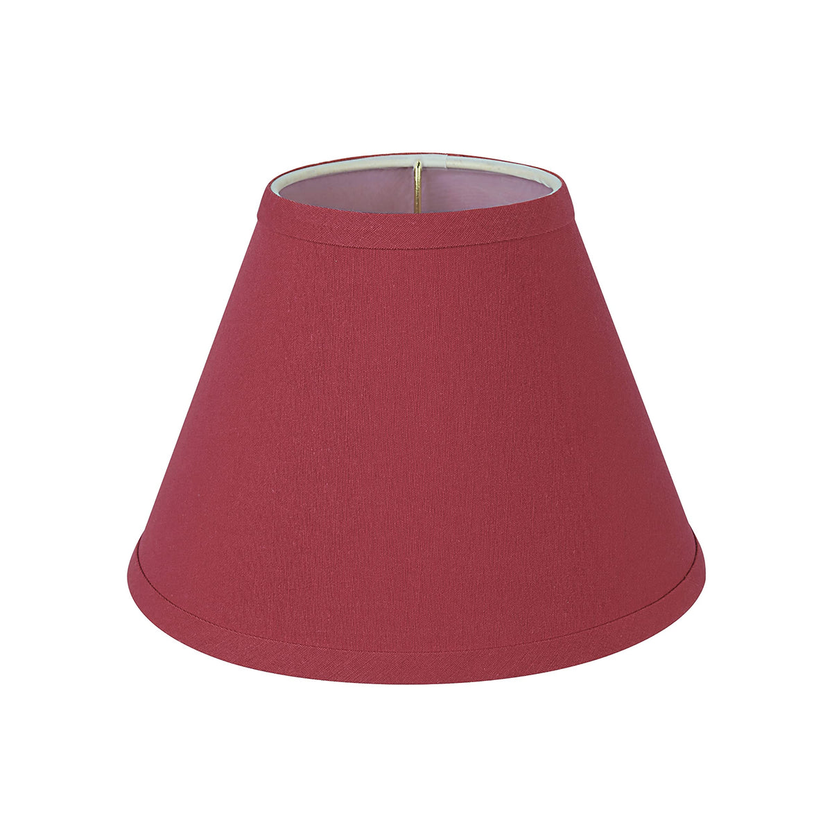 Aspen Creative Item #58879AAspen Creative offers a 1 pack empire shaped UNO construction lamp shade in currant red that will enhance your living space.Shade Dimensions: 6'' Top x 12'' Bottom x 9'' Slant Height.The shade is made with a UNO construction, this allows the shade to sit perfectly centered on a threaded or non-threaded lamp base socket.Crafted with precision and attention to detail, our lamp shades are made with high-quality materials that are built to last. They are made to withstand daily use while still maintaining their shape and beauty.This product is suitable for a wide range of lighting options including table lamps, accent lamps, vintage lamps, candle stick lamps, kid's room lamps, bedroom lamps, bedroom table lamps, night stand lamps, reading lamps, bedside reading lamps, living room end table lamps, bedroom night stand lamps, and pendant lights.