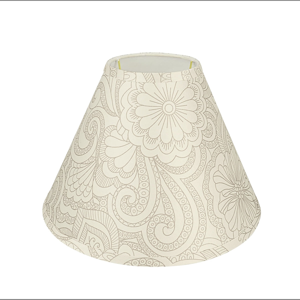 Aspen Creative offers a 1 pack of empire shaped lamp shades with uno fitter. Made with white & grey colored floral printed fabric. The lamp shade dimensions are 5 inch top, 13 inch bottom, 9 1/2 inch slant height. This lamp shade is a UNO construction, designed to fit sockets that measure 33mm wide. UNO fitter ring inner diameter is 33mm. Our hardback shades use Virgin Styrene backing board to produce a warm, natural & smooth light – more appealing than shades made with recycled Styrene board that can crack & yellow over time. Suitable for table lamps, accent lamps, vintage lamps, candle stick lamps, kid's room lamps, bedroom lamps, bedroom table lamps, night stand lamps, reading lamps, bedside reading lamps, living room end table lamps and bedroom night stand lamps.
