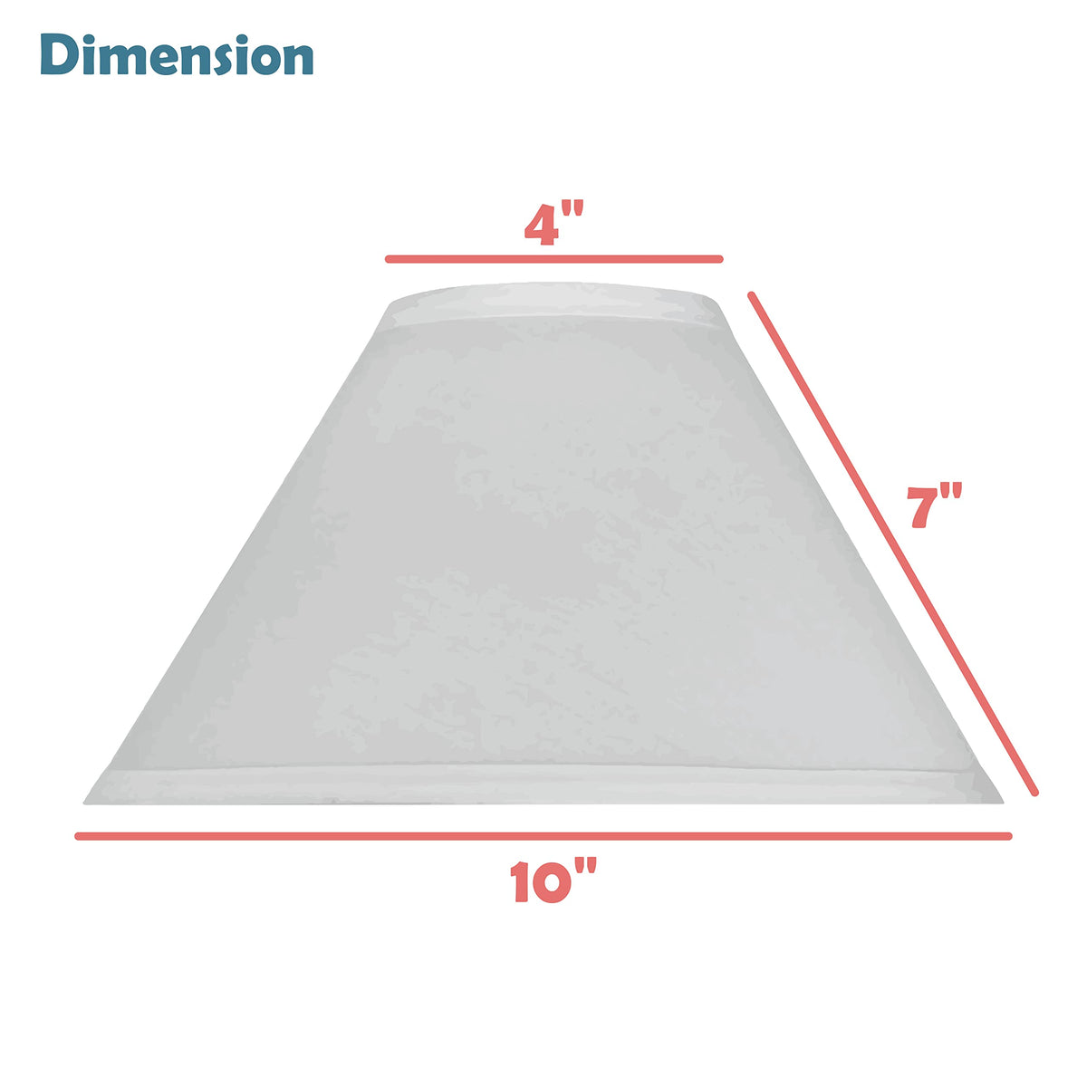 Q: What are the dimensions of the Aspen Creative Empire Uno Lamp Shade?A: The Aspen Creative Empire Uno Lamp Shade has a top diameter of 4 inches, a bottom diameter of 10 inches, and a slant height of 7 inches.