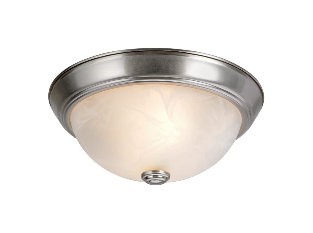 2-Light Flush Mount in brushed nickel with a white alabaster glass shade.
