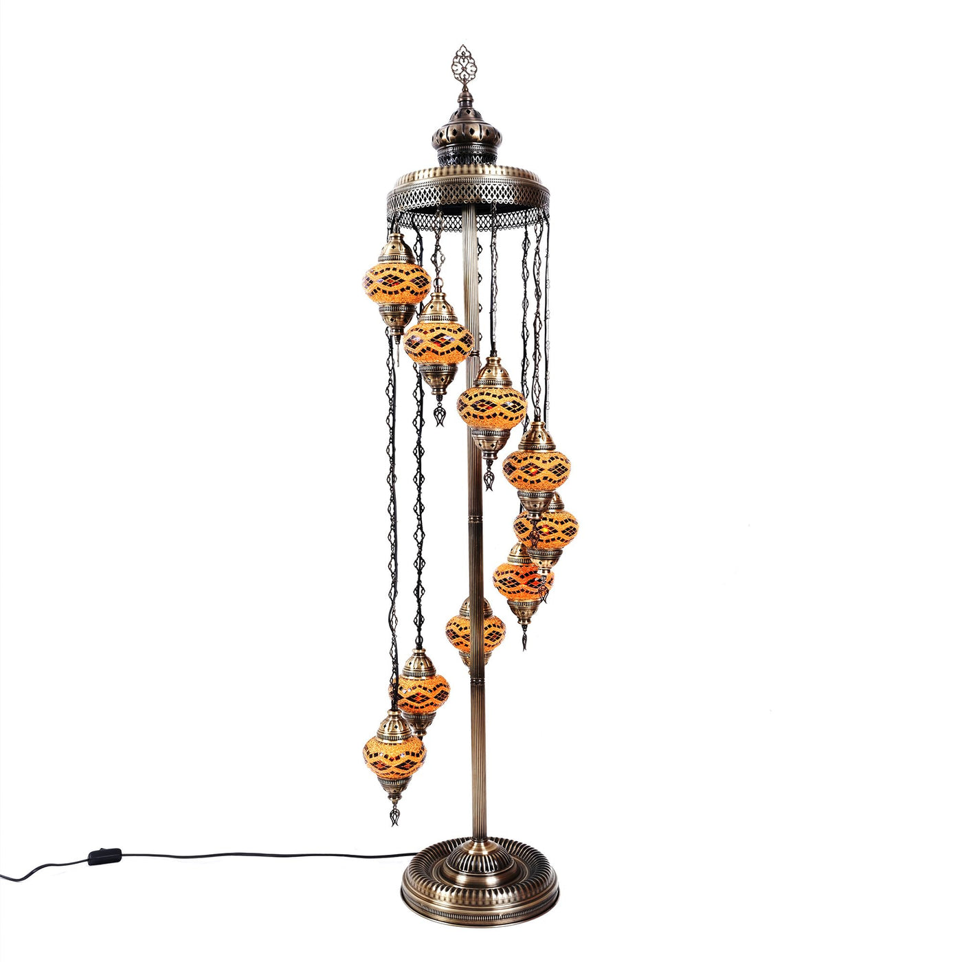 Asylove Turkish Lamp 9 Globe Mosaic Floor Lamp, Mosaic Standing Lamp 9 Globe Mosaic Moroccan Lamps Floor Lamp For Decorative Home Designs Offer 5 Inch Globe - Total Height 70 Inch (Brown)