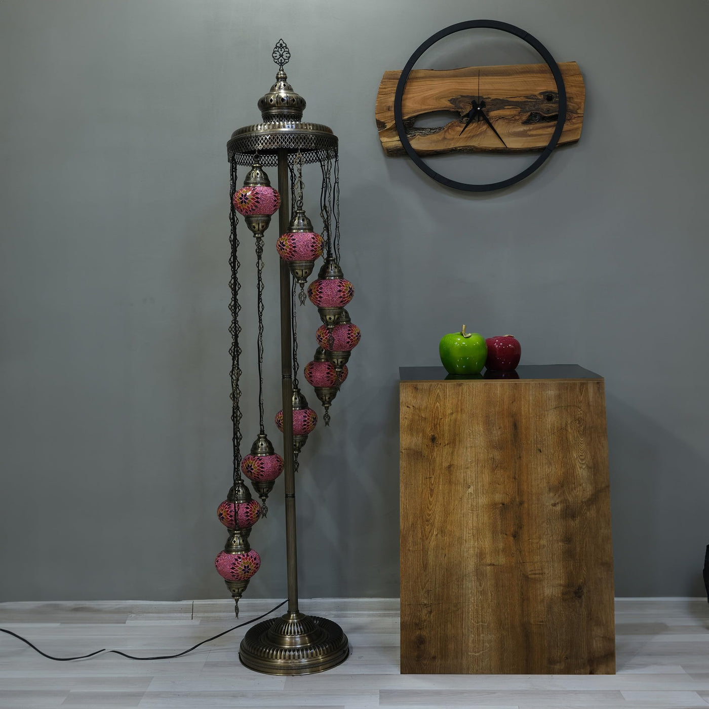 Asylove Turkish Lamp 9 Globe Mosaic Floor Lamp, Mosaic Standing Lamp 9 Globe Mosaic Moroccan Lamps Floor Lamp For Decorative Home Designs Offer 5 Inch Globe - Total Height 70 Inch (Fire)