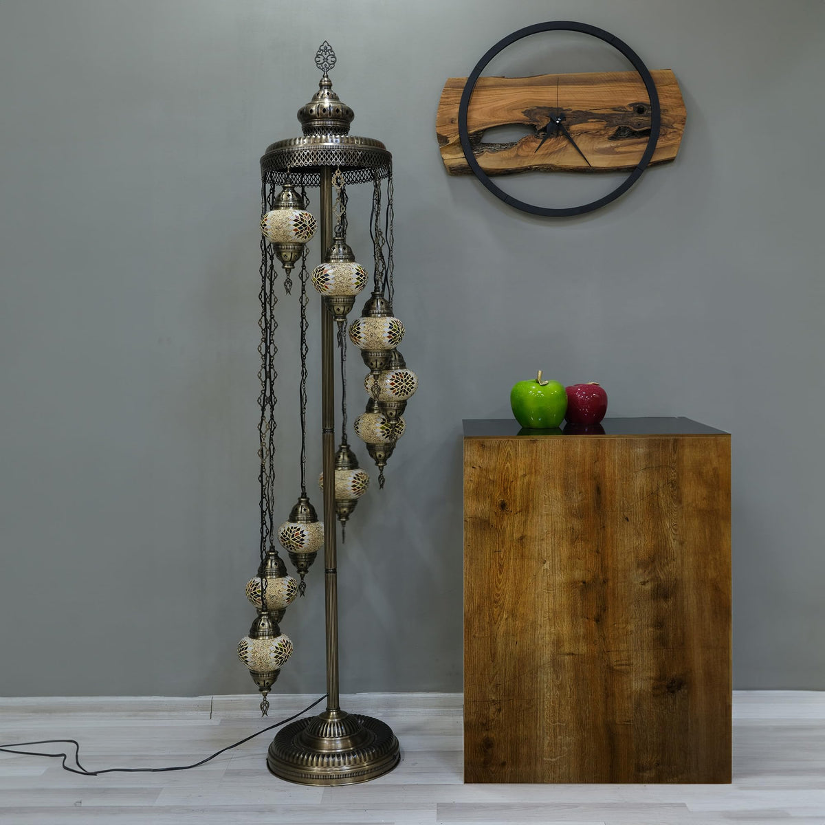 Asylove Turkish Lamp 9 Globe Mosaic Floor Lamp, Mosaic Standing Lamp 9 Globe Mosaic Moroccan Lamps Floor Lamp For Decorative Home Designs Offer 5 Inch Globe - Total Height 70 Inch (Yellow)