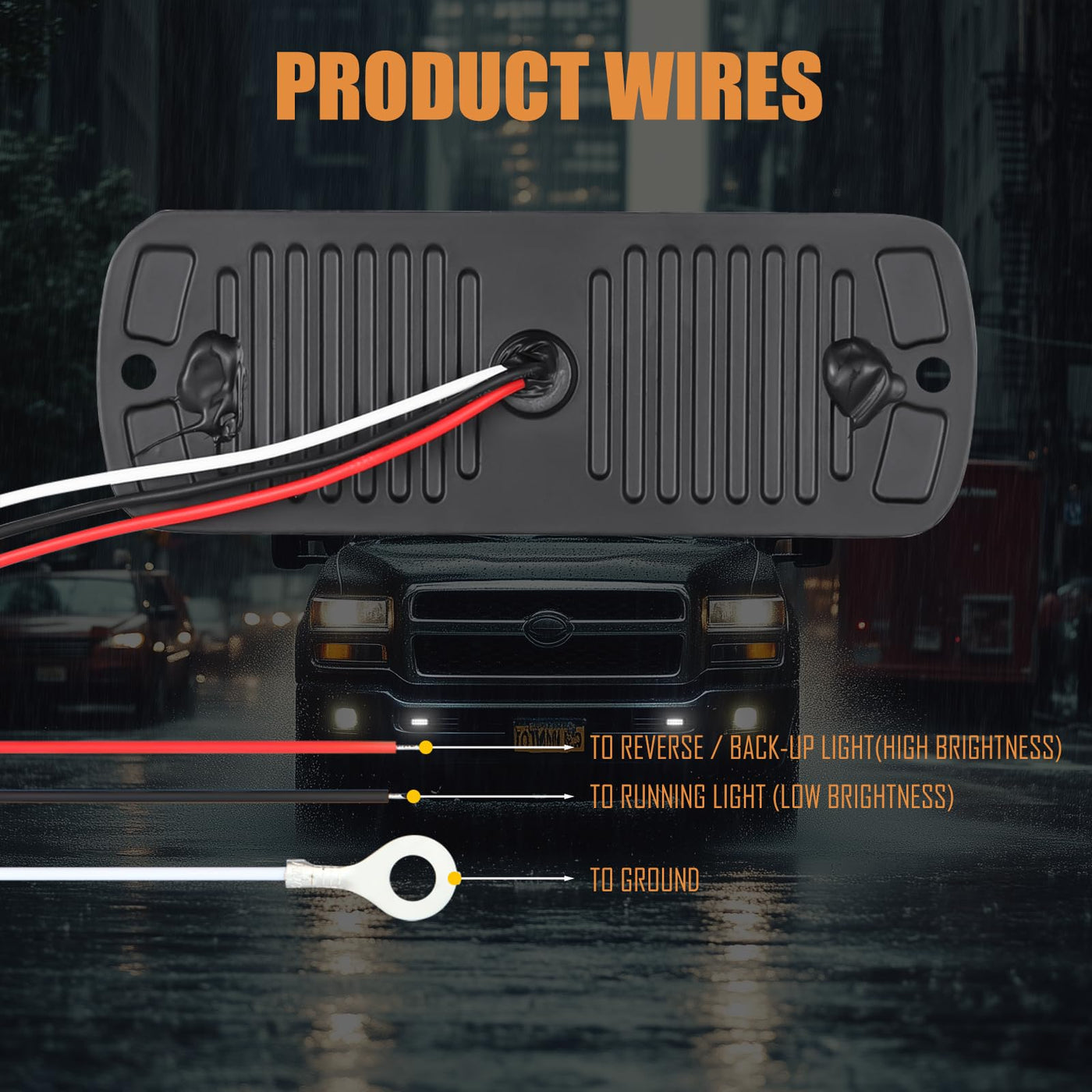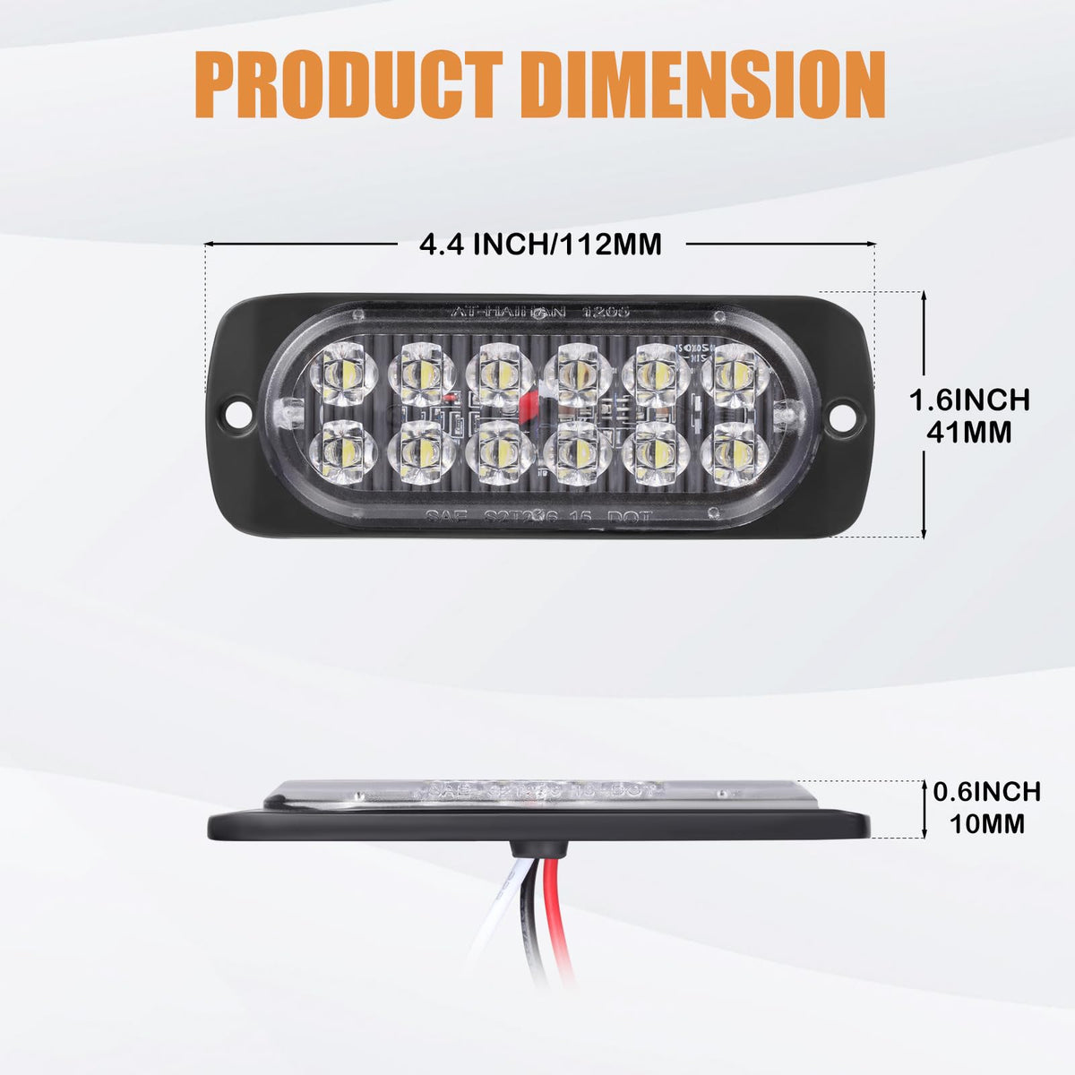 Specification Light Source: 12 PCS SMD2835 LEDs Working Voltage: 12V DC Housing Material: Aluminum alloy Lens Material: Polycarbonate Lens Shape: Oval Lens Color: White Mount Type: Surface mount Waterproof rate: IP66 Wiring connection: Red - Reverse / back-up light; Black - Running light; White - Ground What's in the box: 2 x 4.4'' Oblong LED Lights; 2 x 4.4'' Oblong Rubber Gasket; Mounting Screws; Instruction Manual Installation 1. Determine the mounting location for the AT-HAIHAN LED light, should be mounted to a flat surface or one with the least amount of curvature. 2. Using the supplied mounting gasket as a template, mark the drill hole locations on the mounting surface for either front or rear mounting. 3. Three holes to be drilled out by using correct drill bit, the middle hole needs to be bigger than the others, then remove any sharp edges from these holes. 4. Mount the light along with the mounting gasket, routing the wires through the middle hole.