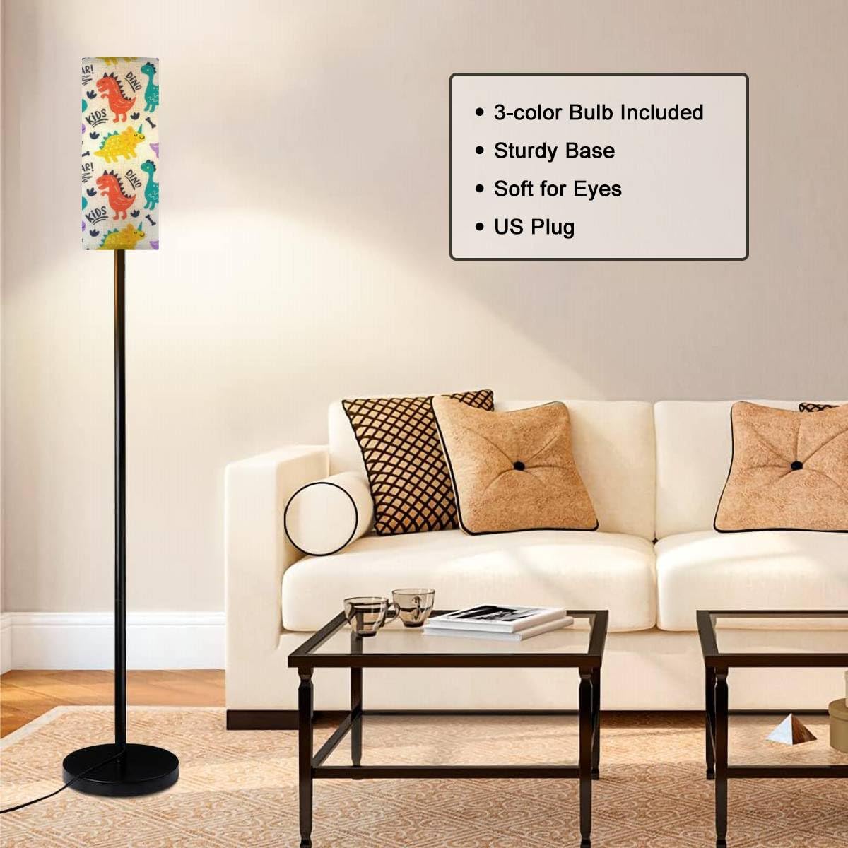 At5Zr4Pd Modern Seamless Cute Funny Dinosaur Dino Friends Print For Kids Clothes Floor Lamp Minimalist Standing Lamps Metal Pole