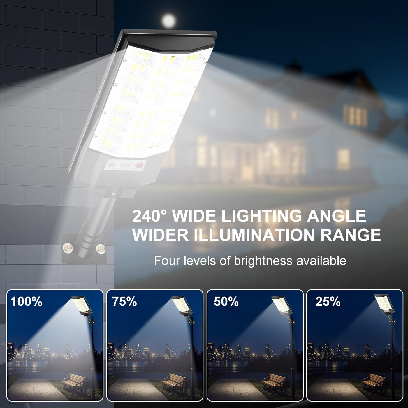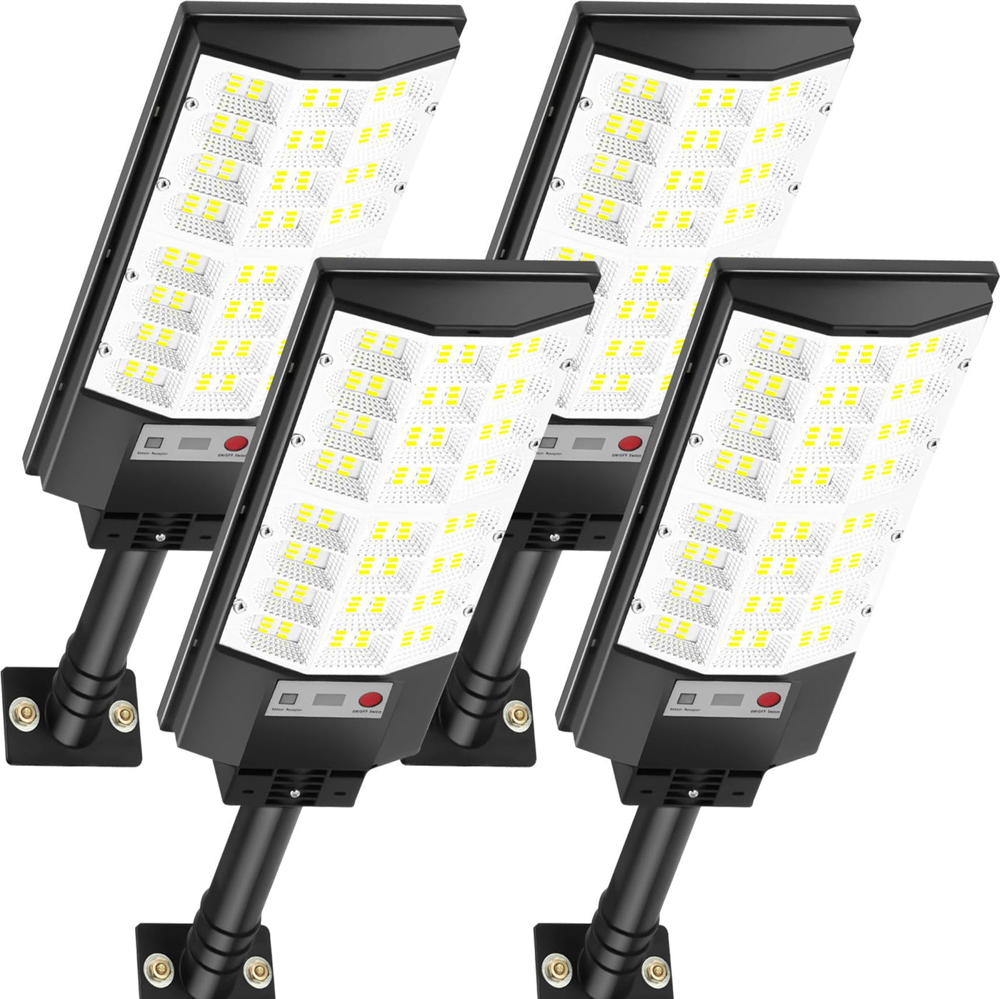 Atoechie 4 Pack Solar Street Lights Outdoor Flood Light With Dual Motion Sensors Dusk To Dawn 6500K Dimmable Security Lamps With Remote Control Ip66 Waterproof Solar Powered Parking Lot Lights