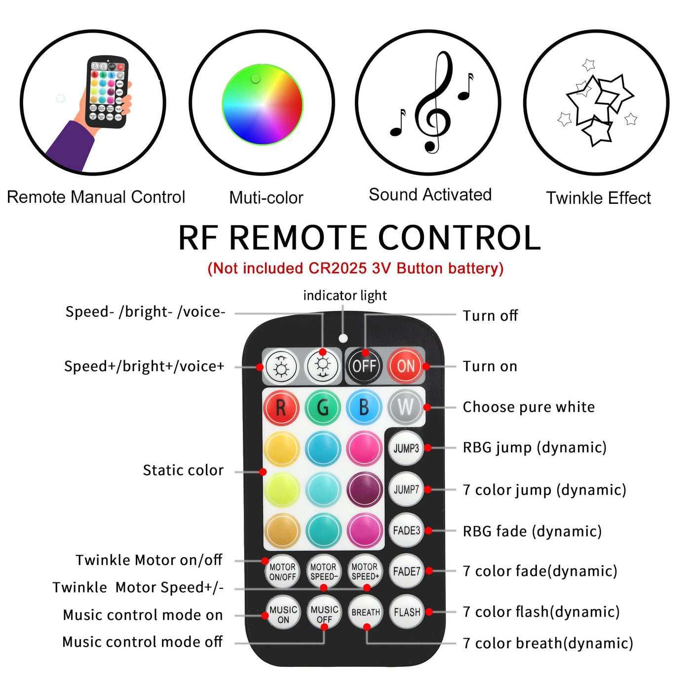Atokee Upgraded 16W Small Size Twinkle Starlight Headliner Kit Is Good For Car Home Ceiling Use. The Fiber Optic Strands Are Made Of Good Pmma Plastic, Only Transmit Light, Non-Conductive, Safer And Energy Saving. Car Star Lights Kit Can Be Controlled By 28-Key Rf Remote Control, Which Has 13 Static Colors, 6 Dynamic Effects, Music Mode, Dynamic Speed And Static Brightness Adjustment. App Has The Same Powerful Function And Even Has More Than 16 Million Colors. Car Star Headliner Kit Can Create A Beautiful Visual Effect In The Evening. Package Included: 1X16W Light Box, 1X Rf Remote Controller(Not Included Cr2025 3V Button Battery Of Remote) 1X End Glow Fiber Optic Strands, 1X Car Use Plug, 1X Power Adapter, 1X Pg Connector 3 X Drill Bits (Diameter: 0.8Mm(0.031In), 1Mm(0.04In), 1.5Mm(0.06In)), 1X User Manual Note: If You Are Use In The Car, Please Choose Car Use Plug. The Power Adapter Is For Indoor Use. Parameter: Work Voltage: Ac86-265V/Dc12V Power: 16W Led Chip: Rgbw Led Remote: Rf/Bluetooth Light Box Material: Aluminum End Glow Fiber Strands: Plastic Light Box Device Size:.3.31 In L 3.31 In W 1.65 In H After-Sale Service: 2-Year Fiber Head Inner Diameter: 22Mm(0.87In)(Can Install Optical Fiber 600Pcs Of 0.75Mm) Features: 1. Music Sync Function: Starlight Kit Has Twinkle And Sound Activated Mode, Car Roof Star Lights Will Change Based On The Music And Beats Playing 2. Powerful Remote Control: 13 Static Colors, 6 Dynamic Effects, Jump/Fade/Four-Speed Twinkle, Music Control Sensitivity Adjustment, Dynamic Speed Adjustment, Static Brightness Adjustment 3. 16W Light Box: High Brightness And Low Energy Consumption, Long Life And Stable Effect. With The Rgbw Mixed Light, The Colors Are More Abundant. 4. Wide Application: The Twinkle Starlight Kit Can Be Widely Used In Cars, Home Theaters, Children'S Rooms And Other Indoor Occasions. Smartphone App Bluetooth Control: 1. Please Download The My Smart Led App(The Qr Code On The Product Manual) 2. Connect A Bluetooth Device: Open The Bluetooth Of The Mobile Phone And Power On The Lamp. Then Open The App. At This Time, The App Will Automatically Connect To The Bluetooth Light Fixture. Note: Do Not Manually Connect Bluetooth To This Device In Your Phone Settings.