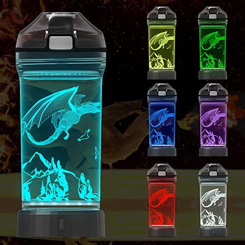 Attivolife Dragon Water Bottle - 14Oz Bpa Free 3D Led Light, Color Changing Travel Cup For Kids