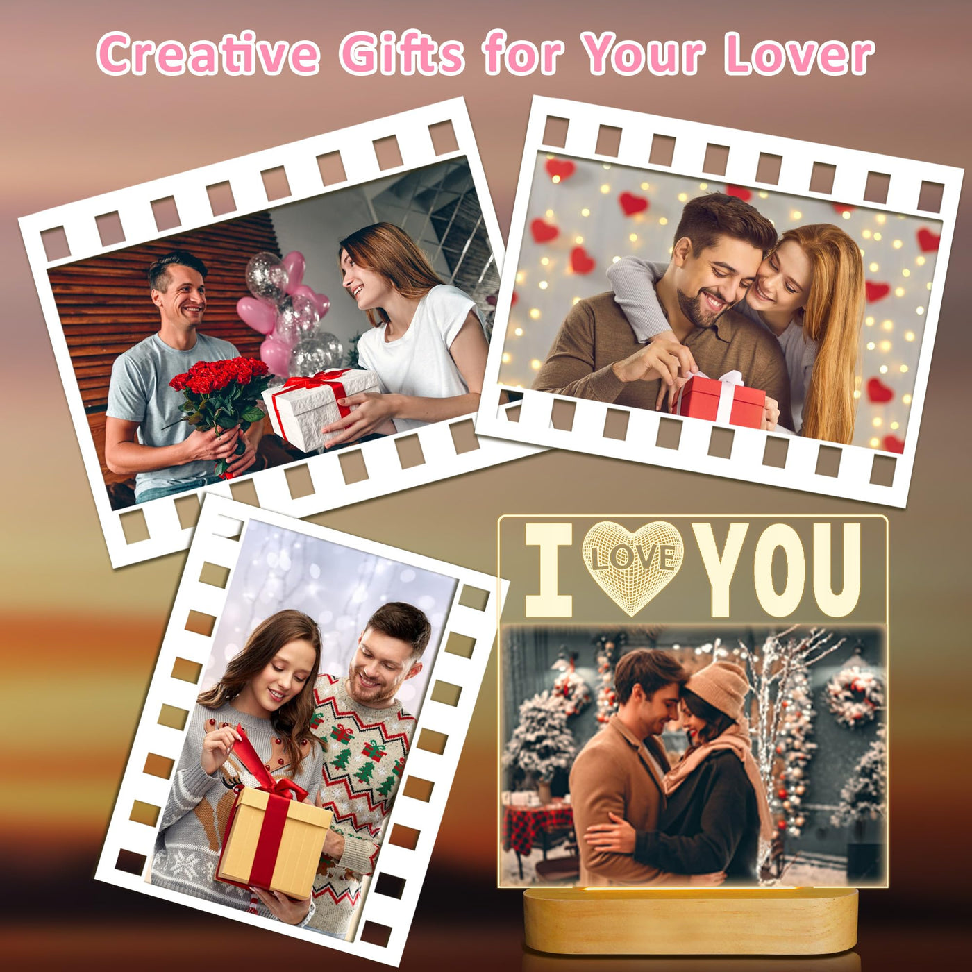 ? A Creative acrylic photo frame with light is best choice for recording beautiful moments and room décor. It sure will impress your lover when they walk into the room or office and keep your precious memories forever. . There is the text I LOVE YOU in the middle of our LED acrylic photo frame, which symbolizes the eternal love for mother/father/lover/friends. ? Warm color light/power supply: USB plug in ? Best Gifts during Birthday, Christmas, Weddings, Anniversaries, Thanksgiving, Valentine's, and Mother's Day. Satisfactory service: