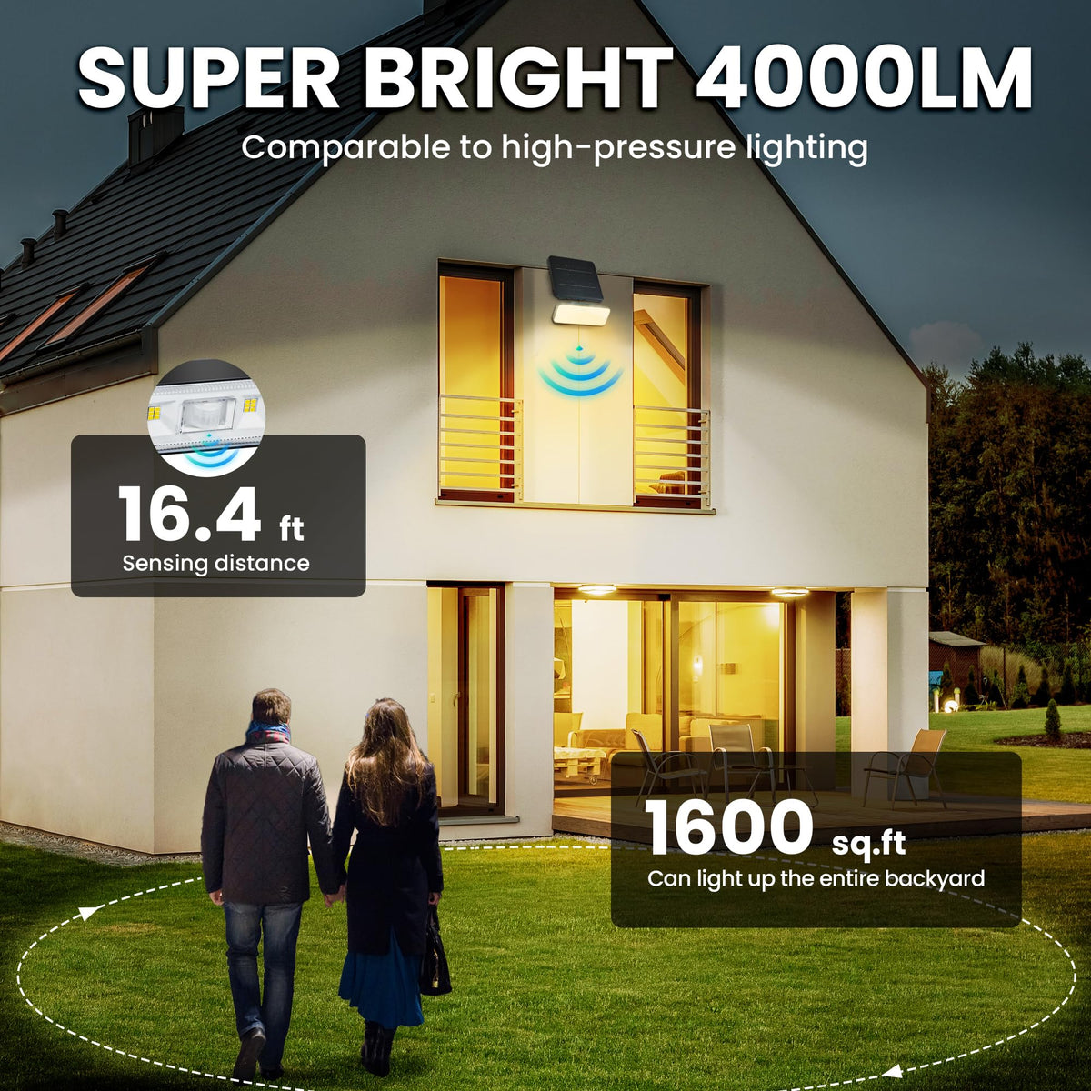 Auderwin Solar Flood Lights Outdoor 4000Lm, Motion Lights Removable, Spot Light Outside Ip67 Waterproof, Solar Powered Security