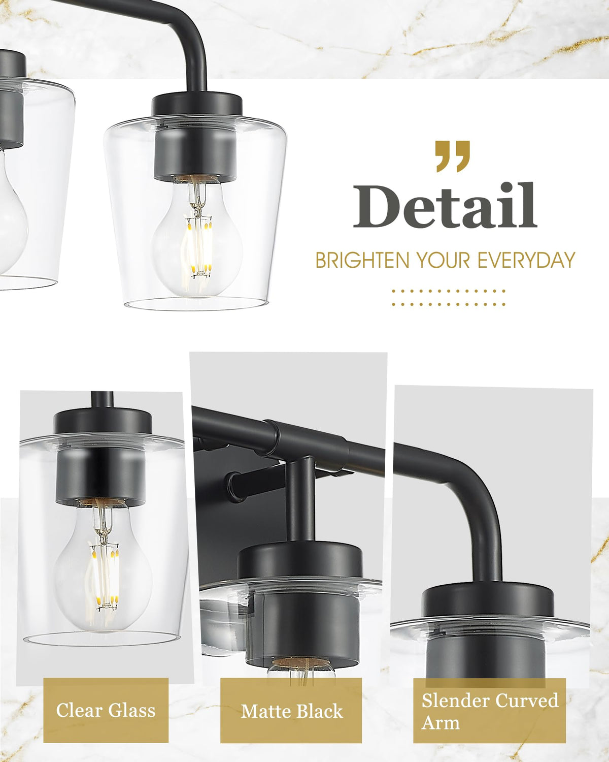 Elevate your bathroom's aesthetic with our 2-light Bathroom Light Fixture, expertly designed to blend modern elegance with practical functionality. This chic bathroom lighting fixtures over mirror features a stunning combination of clear glass shades and a matte black metal frame, making it a versatile addition to any decor style. Ideal for discerning homeowners, it not only provides essential illumination but also serves as a statement piece that reflects refined taste. The minimalist design of this antique vanity lighting fixture transcends typical decor boundaries, offering endless possibilities to enhance your space. Whether placed in your bathroom, powder room, or over the kitchen sink, this light fixture is an excellent choice for illuminating and beautifying your surroundings. For a cohesive look, consider pairing it with other pieces from the Audickic 22004 series for a dramatic, coordinated effect. - Number of Items: 1 Pack - Finish: Matte Black - Material: Metal and Clear Glass - Overall: 14.3''L x 6.5''W x 8.7''H - Back Plate: 7.9''L x4.7''W x 0.8''H - Bulbs: A19