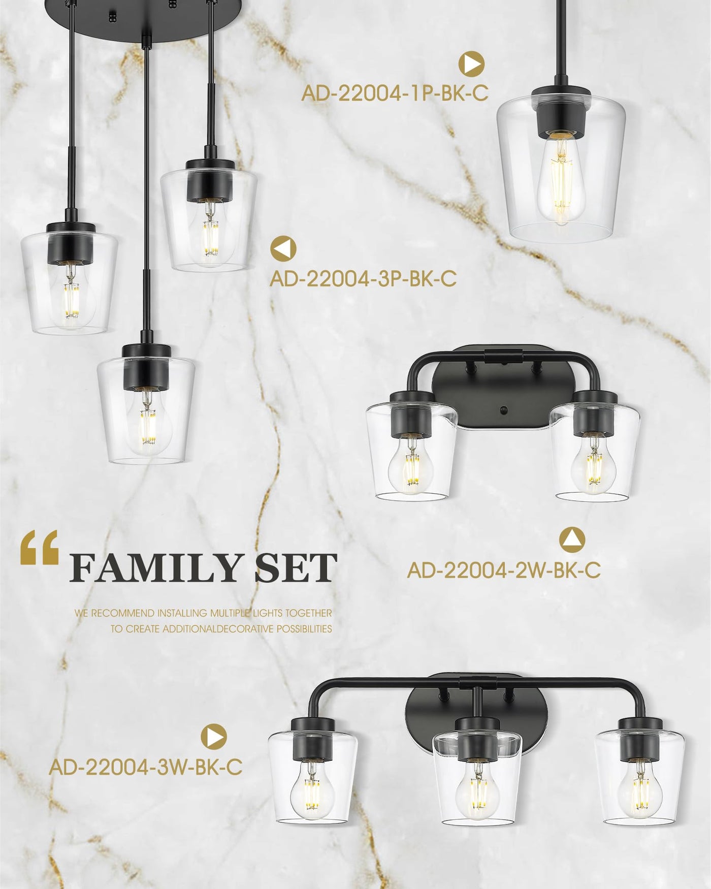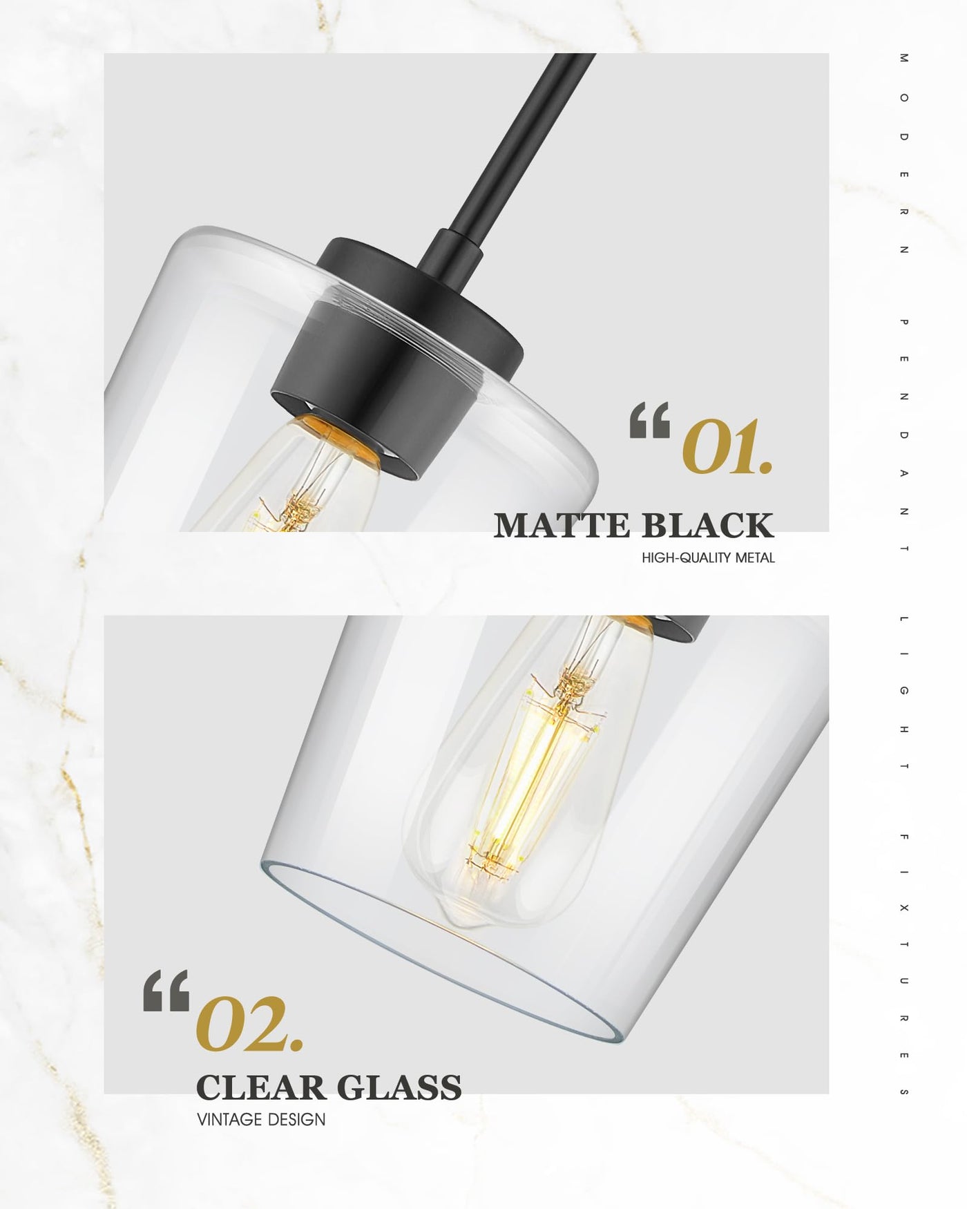 Audickic 1-Light Matte Black Pendant Lights Kitchen Island, A Perfect Blend Of Elegance And Sophistication. Whether Used Individually Or In Clusters, These Pendant Lights Are Perfect For Adding Warmth And Comfort To Your Bedroom, Living Room, Kitchen Island, Home Office, Dining Room, Or Cafe. Elevate The Ambiance Of Any Room With These Stylish And Functional Modern Pendant Light Fixtures That Provide Both Aesthetic Appeal And Practical Illumination. Specifications - Item Quantity: 2 Pack - Finish: Matte Black Finish - Material: Metal And Clear Glass Dimensions - Overall: 6''L X 6'' W X 51.2''H - Shade: F 6'' - Back Plate: F 4.72''