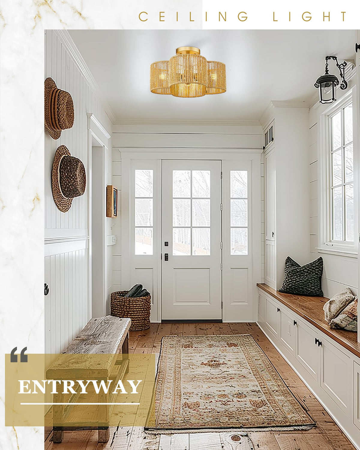 Elevate Your Living Spaces With A Touch Of Timeless Elegance And Natural Charm. Our Boho Light Fixtures Ceiling, Featuring A Hand-Woven Rattan Shade In A Stunning Quatrefoil Design Paired With A Luxurious Gold Metal Finish, Merges Bohemian Flair With Modern Nautical Aesthetics. This Rattan Flush Mount Ceiling Light Not Only Illuminates Your Home But Transforms It Into A Cozy, Stylish Haven. From The Nursery To The Basement, Its Versatile Design And Captivating Shadows Promise To Enhance Every Corner Of Your Home, Reflecting Your Unique Taste And Creating An Inviting Atmosphere For All Who Enter. Perfect For Those Who Cherish Both Style And Comfort. Specifications - Item Quantity: 1 Pack - Finish: Gold - Shade Color: Brown - Material: Metal And Hand-Woven Rattan - Light Source Type: E26 Bulbs - Wattage: 60W Max - Voltage: 120V Dimensions - Overall: 14''L X 14''W X 8''H - Back Plate: 5'' Dia
