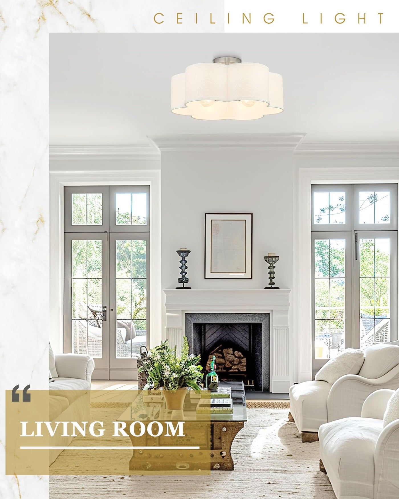 Q: How does the design of this light fixture enhance my home decor?A: With its unique flower shape and minimalist farmhouse style, the Audickic Semi Flush Mount Ceiling Light not only provides ample lighting but also serves as a decorative piece that elevates the overall ambiance of your living space.