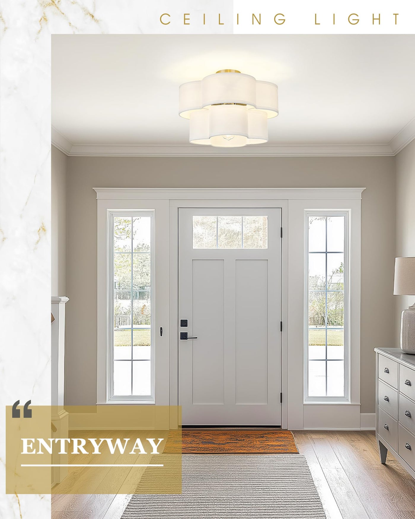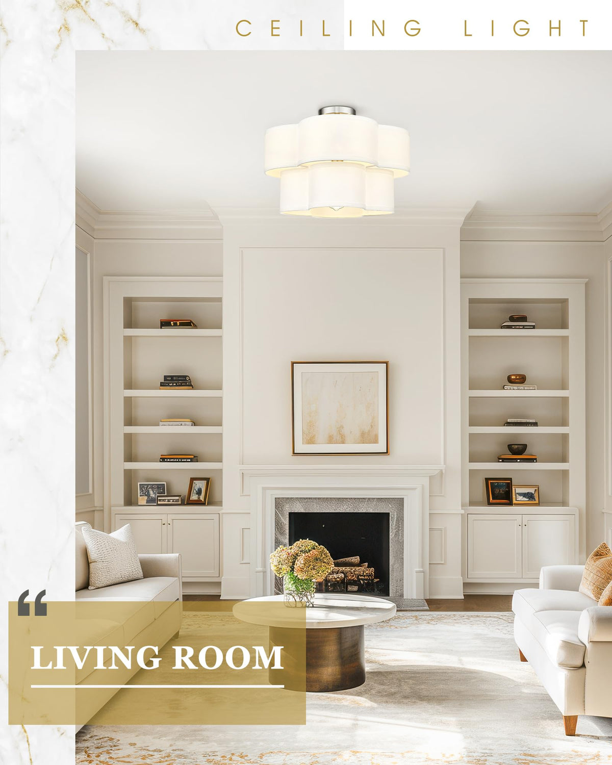 Audickic Semi Flush Mount Ceiling Lights, 5-Light 18'' Ceiling Light Fixtures With Double Fabric Drum Shade In Quatrefoil Shape,