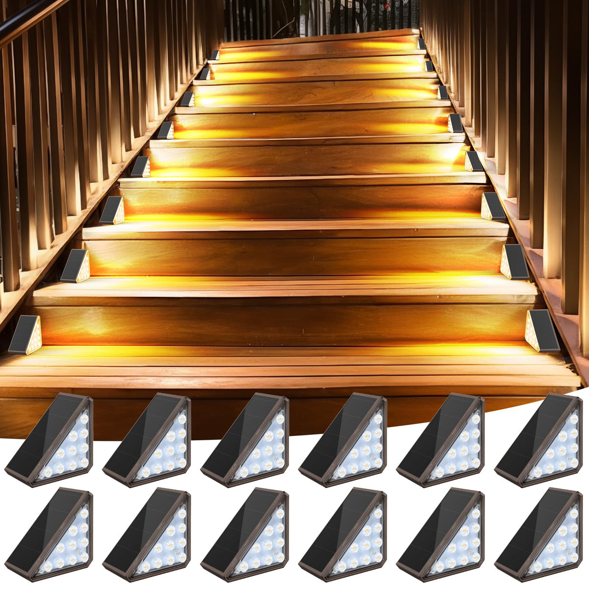 Audles 12 Pack Solar Stair Lights Outdoor Stair Lights With Waterproof Ip67 Led Solar Light For Outside Light Decor For Stair, D