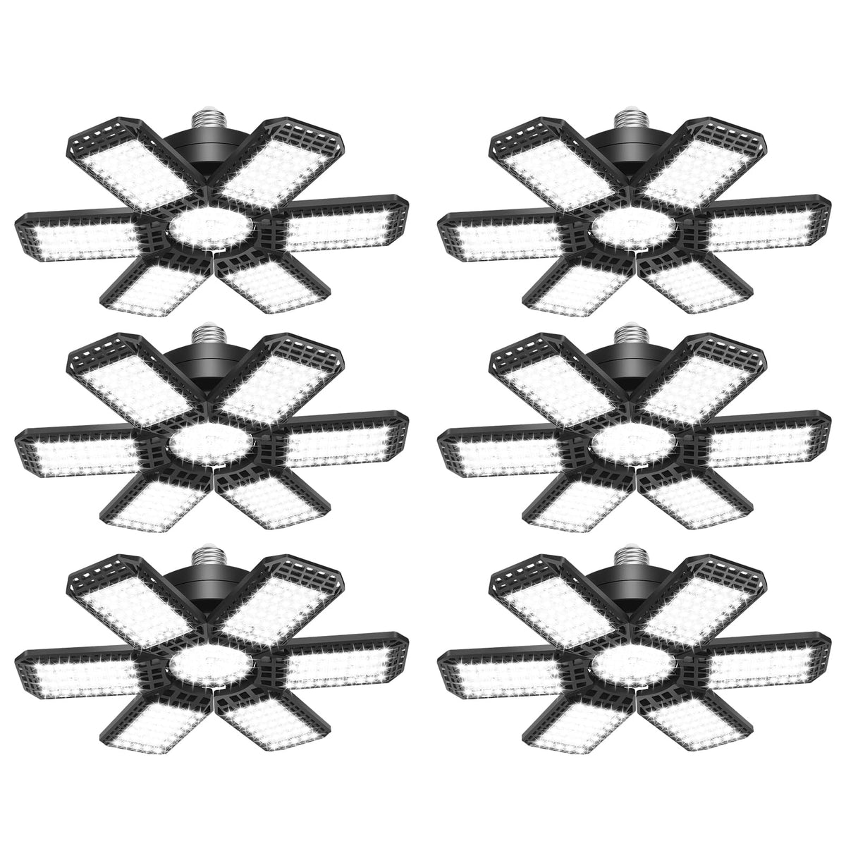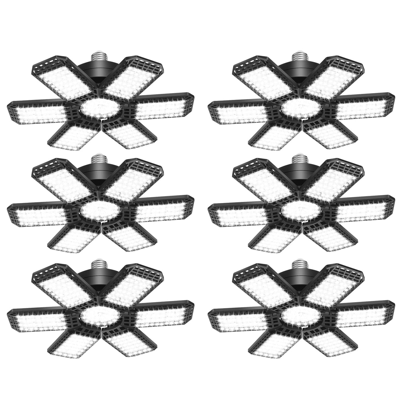 AUDLES 6 Pack LED Garage Light, 200W 20000LM, 6500K, E26/E27 Socket, Black