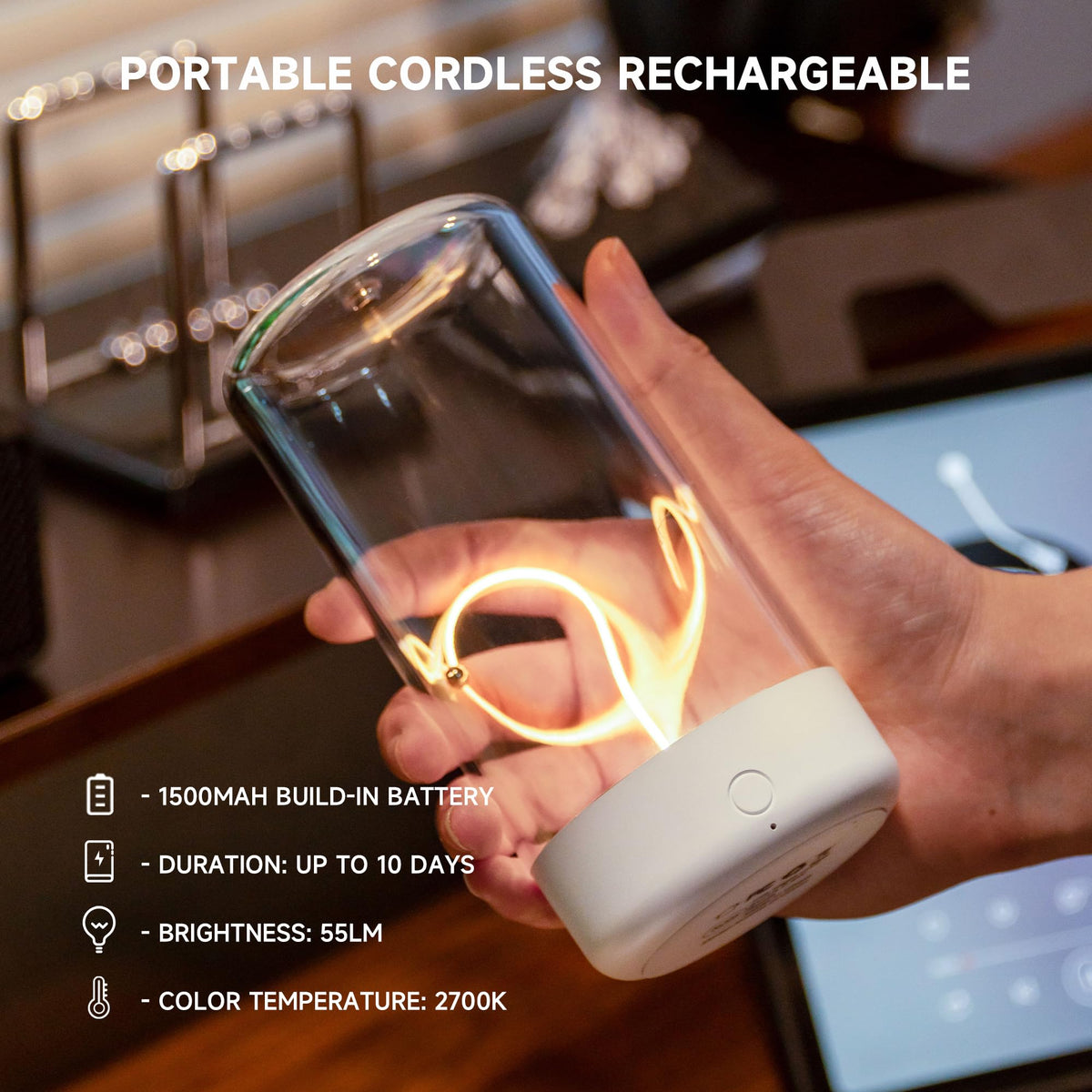 Q: Is the lamp suitable for outdoor use?A: Yes, the cordless design of the AUGE LIGHT table lamp makes it perfect for outdoor use, such as camping or patio gatherings, allowing you to enjoy ambient lighting wherever you go.