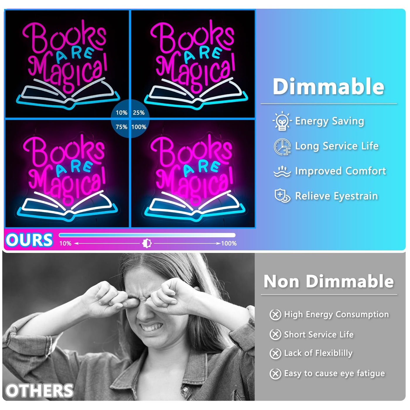 The AUGELRE Books are Magical Neon Sign is a vibrant decorative piece designed to enhance the ambiance of any reading space. Ideal for bedrooms, classrooms, or libraries, this neon sign serves as both an eye-catching decoration and a comforting light source, making it perfect for book lovers and avid readers.