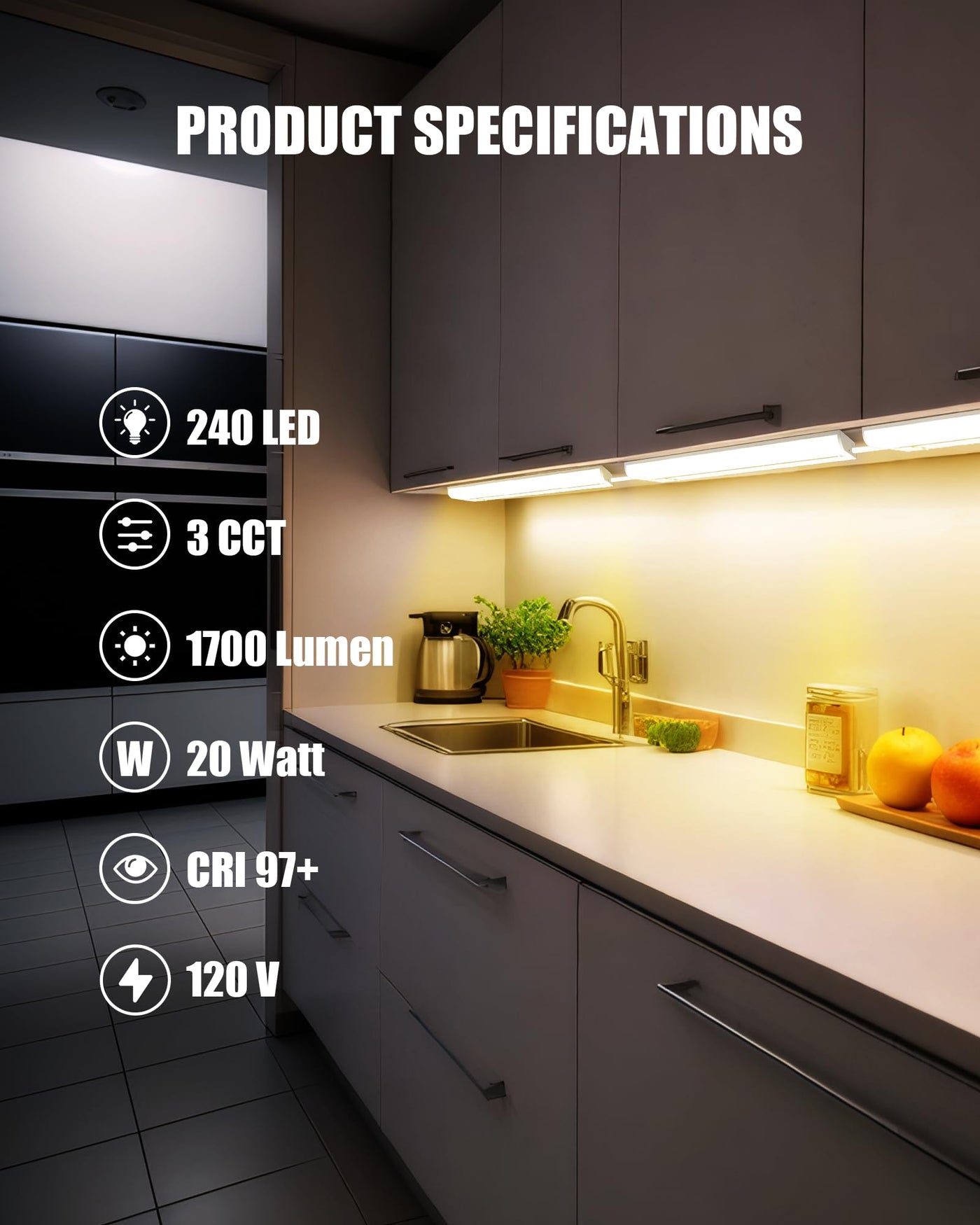 Aulaidik Hardwired Under Cabinet Lighting 30'' - Cri 97, 20W, 120V, 240 Led, 3Cct Daylight With Triac Dimmable, 1700Lumen Linkab
