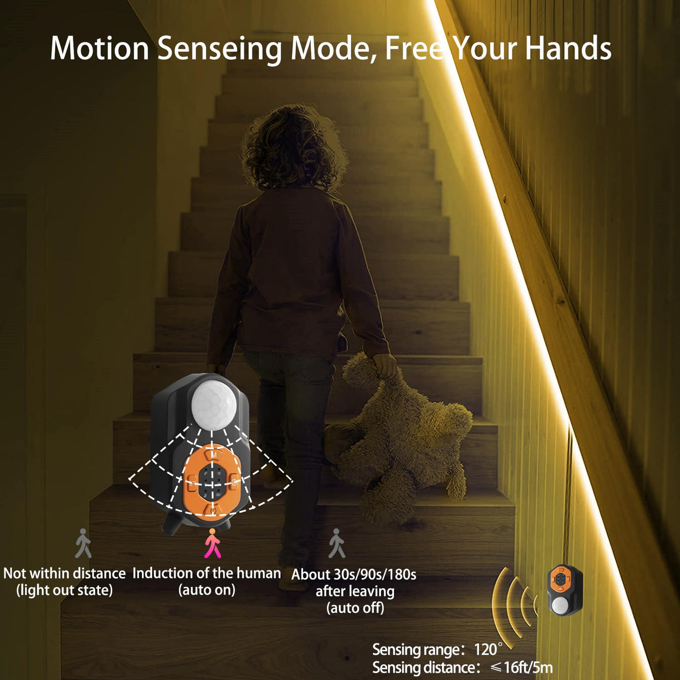 Q: How does the motion sensor work on the Auplf Under Bed Lights?A: The Auplf Under Bed Lights feature a built-in motion sensor that automatically activates the LED light strip when it detects movement within its sensing range. This allows the lights to illuminate your space without needing to manually turn them on, providing convenience during nighttime without disturbing others.