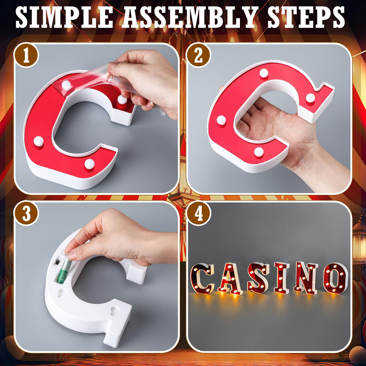 Q: Are the light up letters easy to arrange for different displays?A: Yes, the circus light up letters can be arranged to spell out different words or phrases, making them versatile for various occasions.
