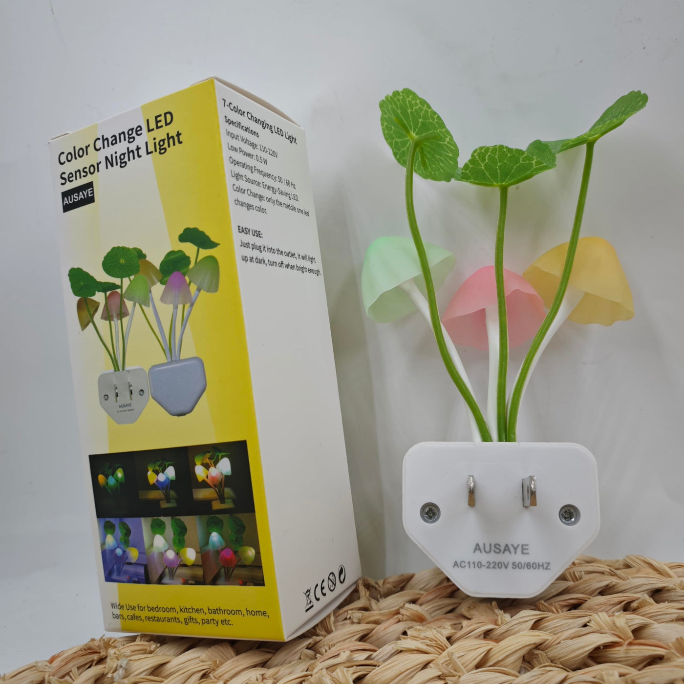 Ausaye Pretty Cute Gifts 0.6W Plug-In Led Night Light Mushroom Night Light Bed Lamp With Dusk To Dawn Sensor You Must Have The Experience Of Bumping Into Wall Or Furniture When You Walk Around Your House In The Middle Of The Night. Ausaye 0.6W Led Night Lights Are Just Designed To Release You From These Troubles. They Emit Enough Light For You To Walk Around In The Dark Safely Without Having To Turn On Any Overhead Lights, But Not Too Bright As To Be Distracting. Features: Color: 2 White Leds + 1 Color Changing Led,Colorful And Gentle Led Light, Ideal For Home Decoration Leaf Material: Plasticmushroom Material: Soft Silicone Auto On/Off Energy Efficient Long Lifespan Us Plugs Specification: Sensor Type: Light Sensor Input Voltage: Ac110- 220V Operating Frequency: 60 Hz Power Consumption: 0.6W Led Quantity: 3Pcs Plug Type: Us Plug Package: Pack Of 2 Say Good Bye To Bumping Into Obstacles In The Dark, Just Get Ausaye 0.6W Led Night Lights And Put Them Around Your House: Hallway, Bathroom, Kitchen, Living Room, Bedroom, Kids Room, Nursery, Stairway, Entryway. They Will Greatly Help You In Night Operations.