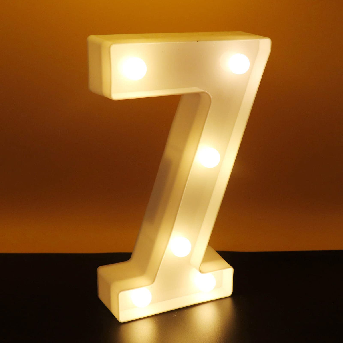AUSAYE Larger Led Light Up Number, Decorative Light Up Number Sign for Night Light Wedding Birthday Party Christmas Home Bar Decoration Number Built-in Switch: on /off switch Main material: plastic Luminous color: warm white Shape: letters, numbers, shapes Wide Uses: as a decorative night light, suit for birthdays, Christmas, weddings, parties, shops, stage scene, home decorations (family sitting room, bedroom) etc.. Item height: 8.66 Inch,1.77 Inch thick Package content: 1 x LED Light up Number