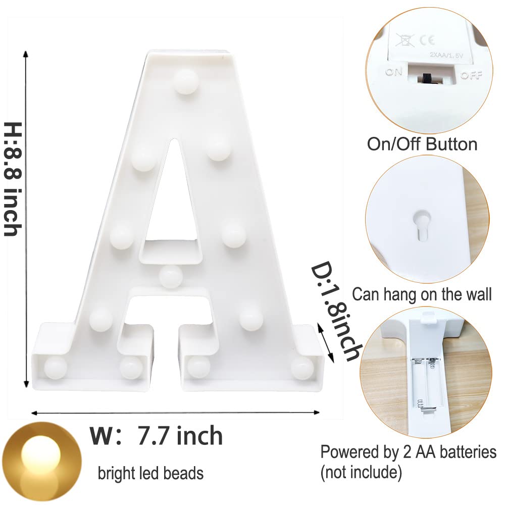 Ausaye Led Letter A Light - White Alphabet Night Light For Home, Party, Wedding, Christmas Decor