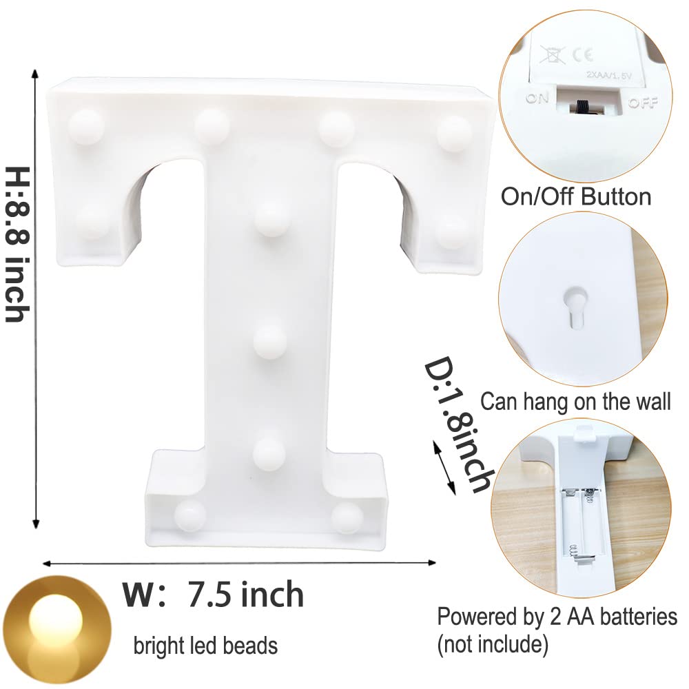 Ausaye Larger Light Up Letters Lamp, Led Alphabet Letter Lights Sign For Home Party Wedding Decoration Built-In Switch: On /Off Switch Main Material: Plastic Luminous Color: Warm White Shape: Letters, Numbers, Shapes Wide Uses: As A Decorative Night Light, Suit For Birthdays, Christmas, Weddings, Parties, Shops, Stage Scene, Home Decorations (Family Sitting Room, Bedroom) Etc.. Item Height: 8.66 Inch,1.77 Inch Thick Package Content: 1 X Letter Or Number By Your Choice