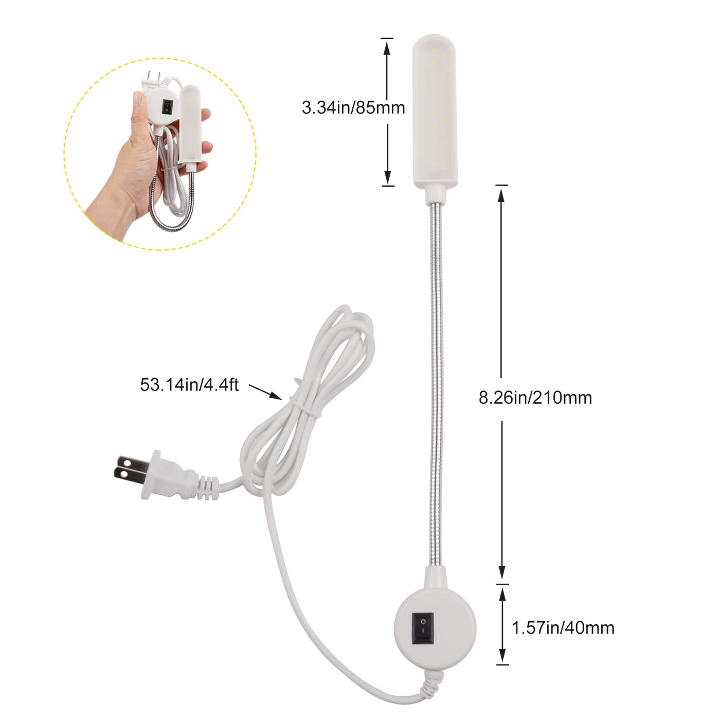 Autidefy Sewing Machine Light Features: - Straining To Work In Dimly Lit Spaces? 30 Bright, Daylight Leds Provide Great Light Without Straining Your Eyes With Its Clean, Clear, Crisp White Light. The Led Flexible Work Light Will Illuminate Even The Darkest Of Work Areas While Guaranteed Not To Flicker, Pulsate, Or Dim With Use; - This Led Work Light With Long And Flexible Rotation Neck And Strong Magnetic Base,Not Only Used For Workbench, Lathe, Drill Press And Milling/Sewing Machine For Work, But Also Used As Desk Lamp At Home For Learning, Reading Magzine And Doing Handwork. Small Led Light, But Very Pratical And Multifunctional. Specifications: Color:White Number Of Led: 30Pcs Working Power: 6W Light Color: White Total Length: 13.18 Inch Gooseneck Length: 8.26 Inch Cable Length: 53.14 Inch Product Voltage: 220V Base: Strong Magnetic Base Packing Size: 2.36X1.57X6.88Cm Product Net Weight: 122G Ac: 110~220V,50/60Hz Package Include: 2 Pack Sewing Light