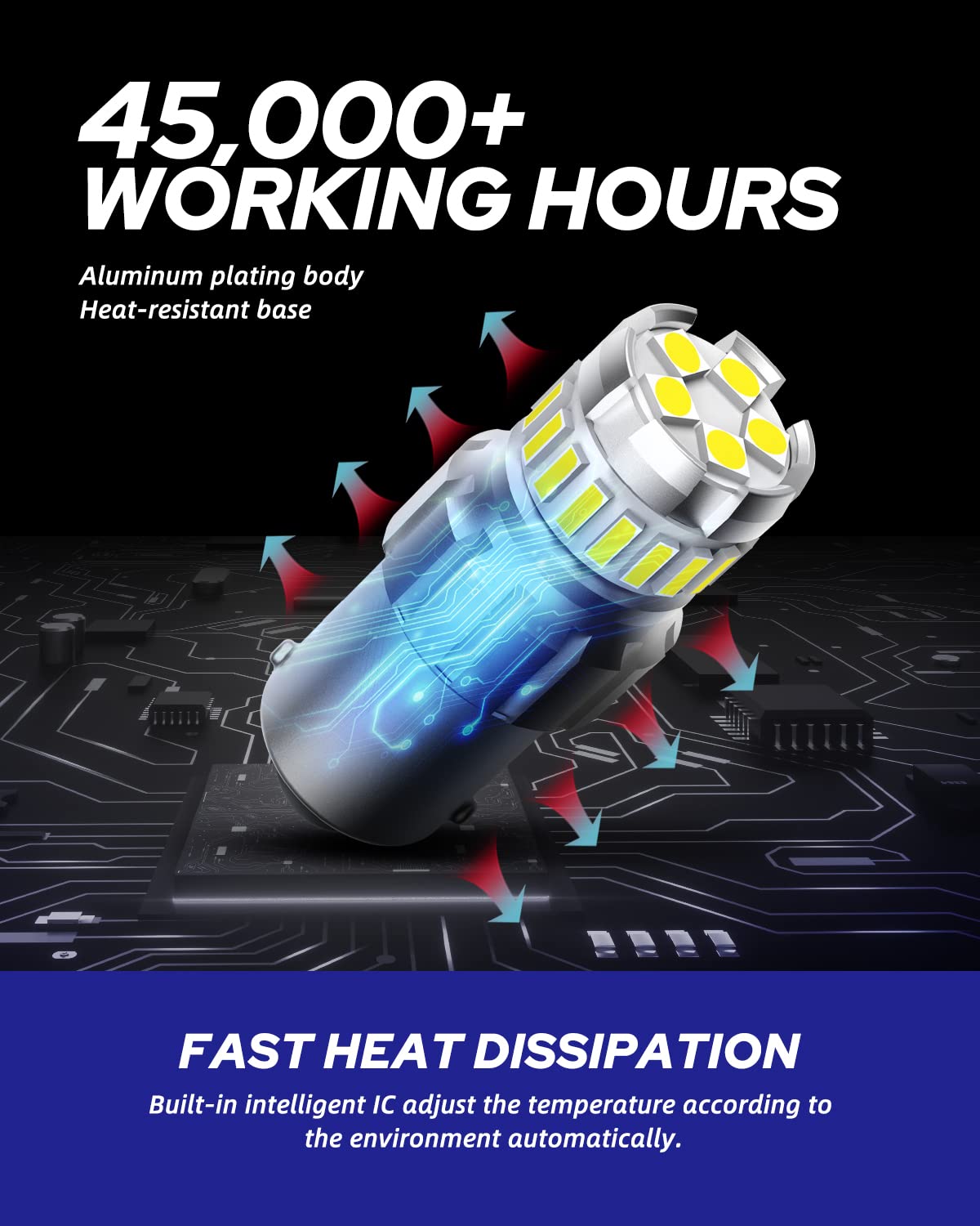 Q: What is the lifespan of the AUTOONE 1156 LED Bulbs?A: The AUTOONE 1156 LED Bulbs have an impressive lifespan of up to 45,000 hours, thanks to their efficient heat dissipation design and durable construction, which includes an aircraft-grade aluminum body.